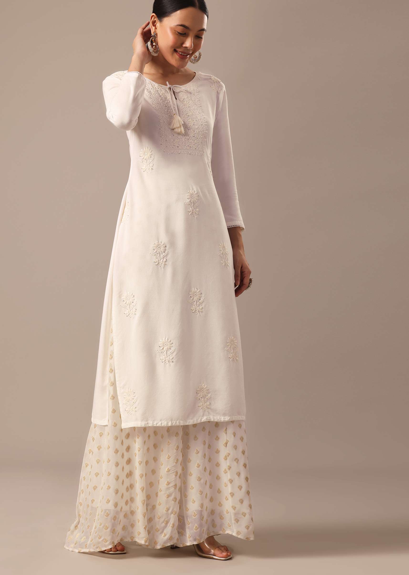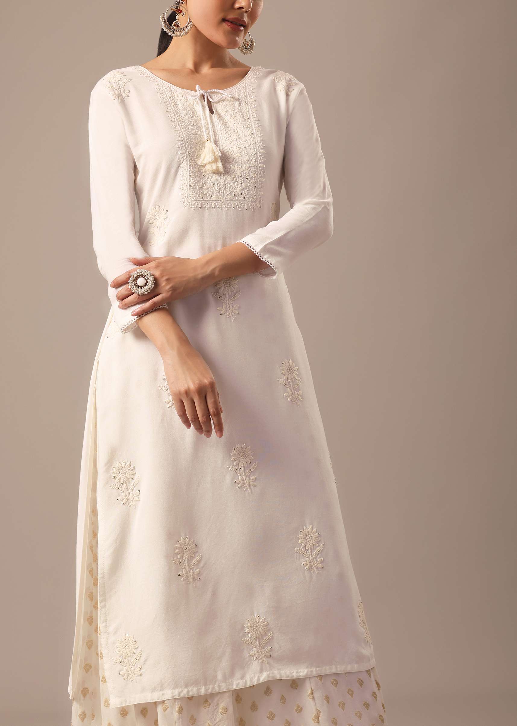 • An effortless way to steal the show, this slim-fit silhouette showcases thread knots and Lucknowi... More Product Details