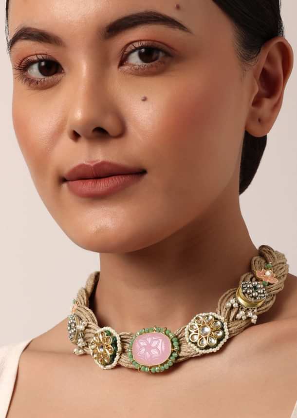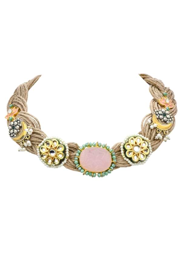 Silver And Multicolor Oxidized Ethnic Necklace In Mix Metal