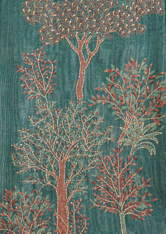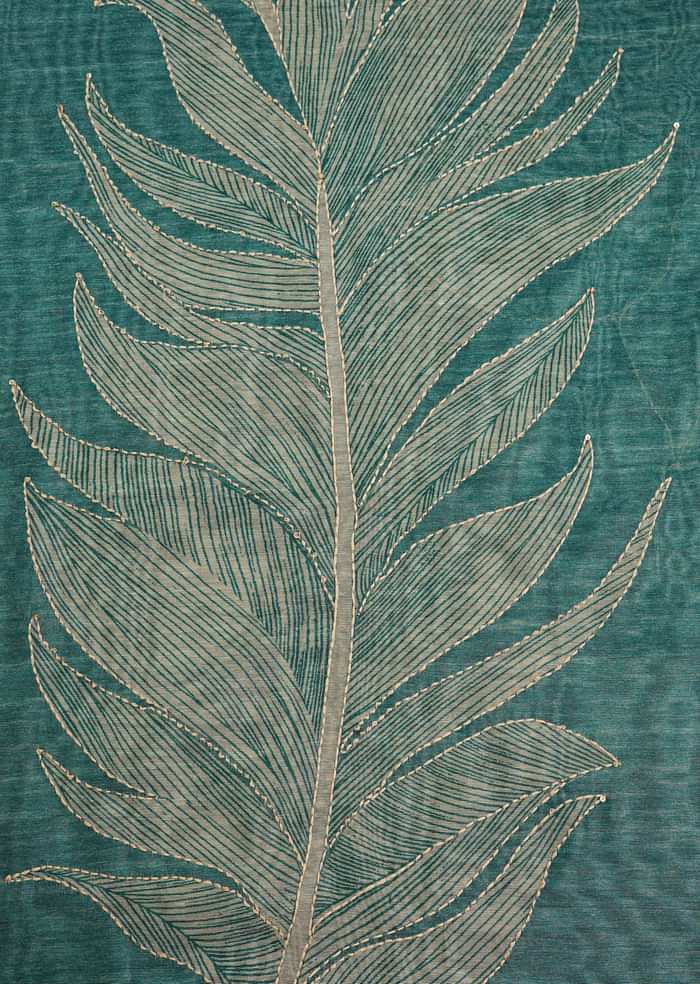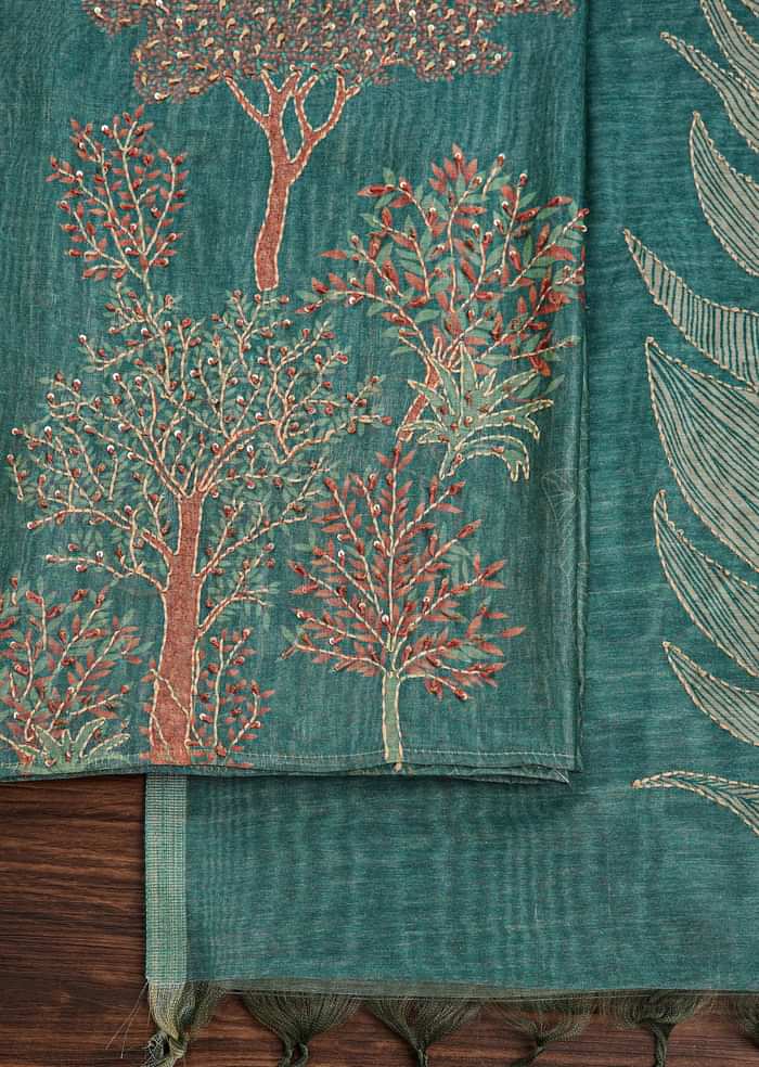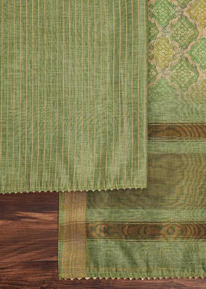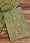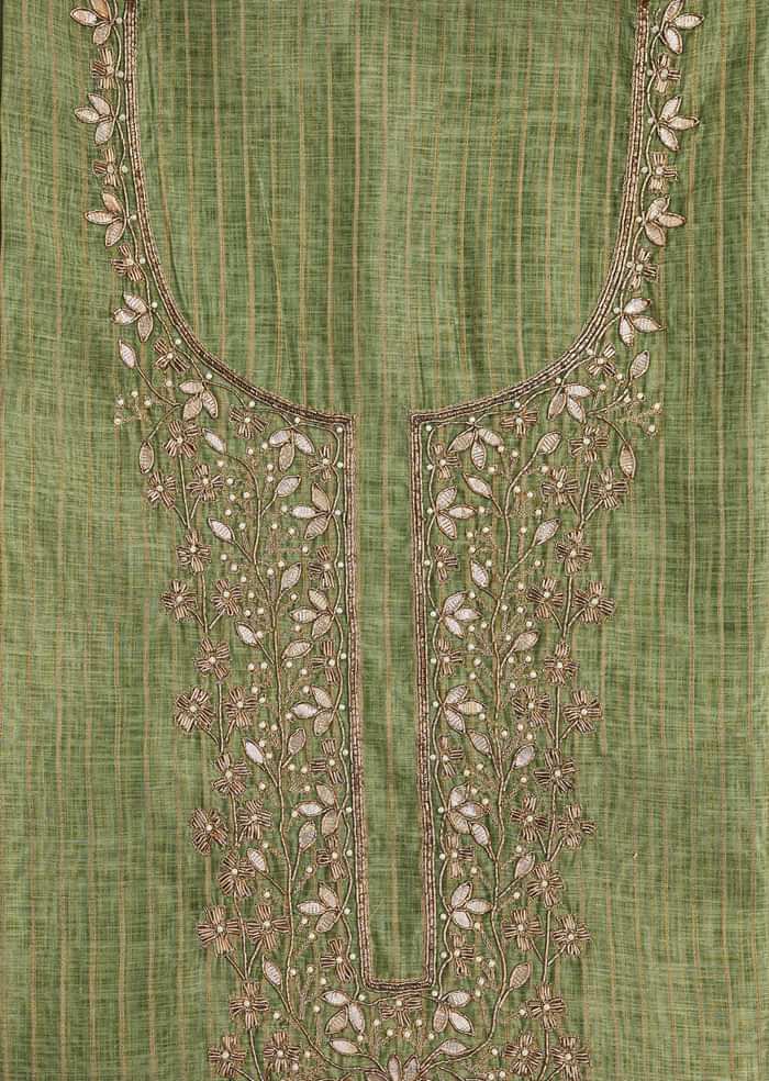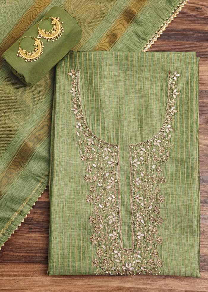 Green Chanderi Unstitched Suit Set With Zardosi And Gota Patti Work