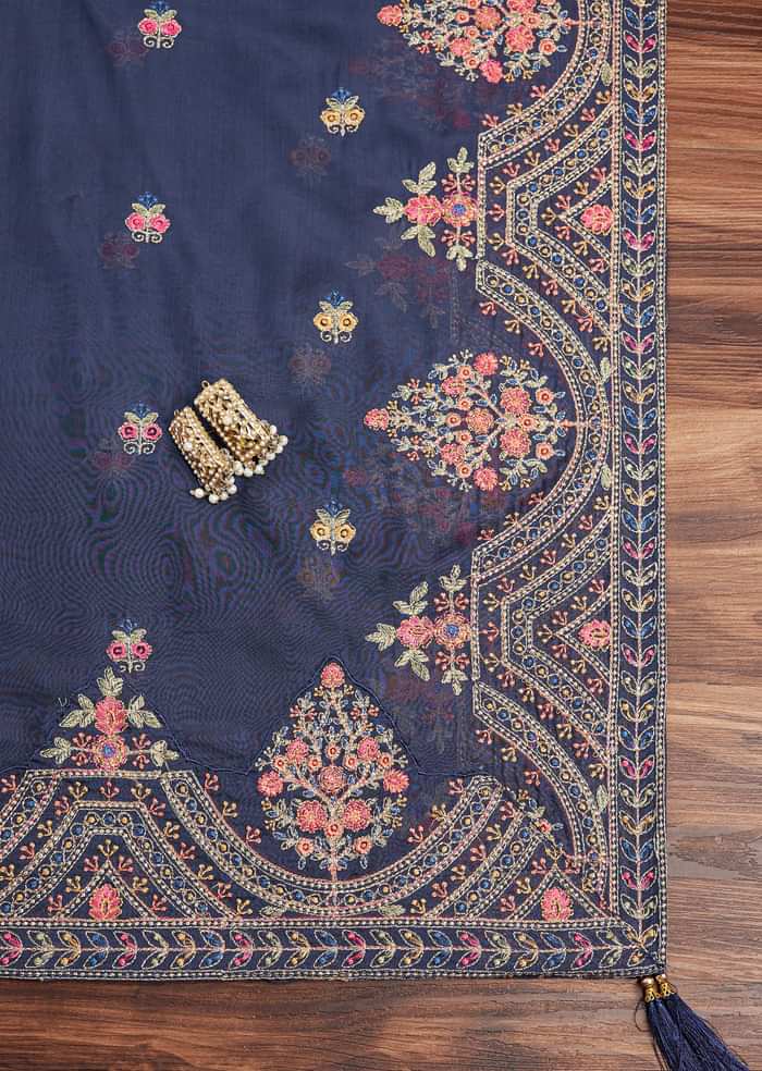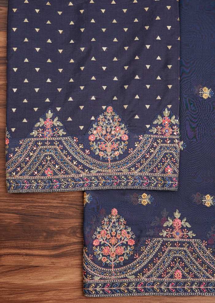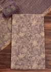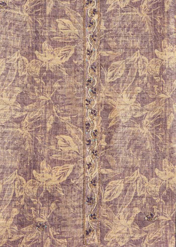 Lavender Tussar Unstitched Suit Set With Floral Print And Zari Work