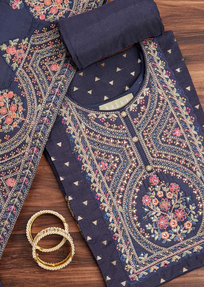 Party, wedding, or workplace, you can prioritise your personal taste with a huge assortment of dress material available at KALKI. Patiala suits, festive sarees, elegant office wear, wedding embroidered Anarkalis, and even lehengas can be crafted from KALKI’s dress material for women. Choice of unstitched dress material like cotton dress material, chanderi dress material, velvet, or silk dress material can play a significant role during specific seasons like summer, spring, or winter. Velvet can impart a luxurious look and make a lasting impression at grand Indian weddings.