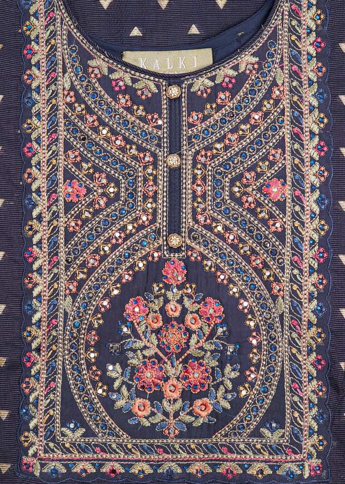 Explore KALKI’s collection for a wide range of dress materials in chanderi, banarasi silk, and cotton and experience the joy of personalised ethnic fashion. From intricately embroidered designs to floral prints, batik, zari work, and minimal styles; the collection of unstitched dress material for women at KALKI ensures quality and comfort. The varieties of dress materials can meet individual preferences. For instance, a woman with heavier arms would look for a full-sleeved kurta and a bulky woman would prefer a suit in a striped pattern. Infact each dress material at KALKI can be a narrative of the wearer’s style, beauty, and persona. You can get the dress materials stitched in an innovative style with stylish sleeves, creative neckline, trendy cut, and desired length, and can have other personalised details like buttons, borders, or hangings.