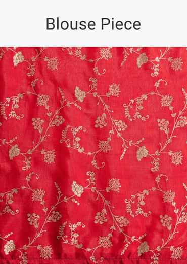 Red Khaddi Georgette Zari Weave Saree With Unstitched Blouse