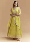 Citrus Green Embroidered Georgette Anarkali With Choker Dupatta