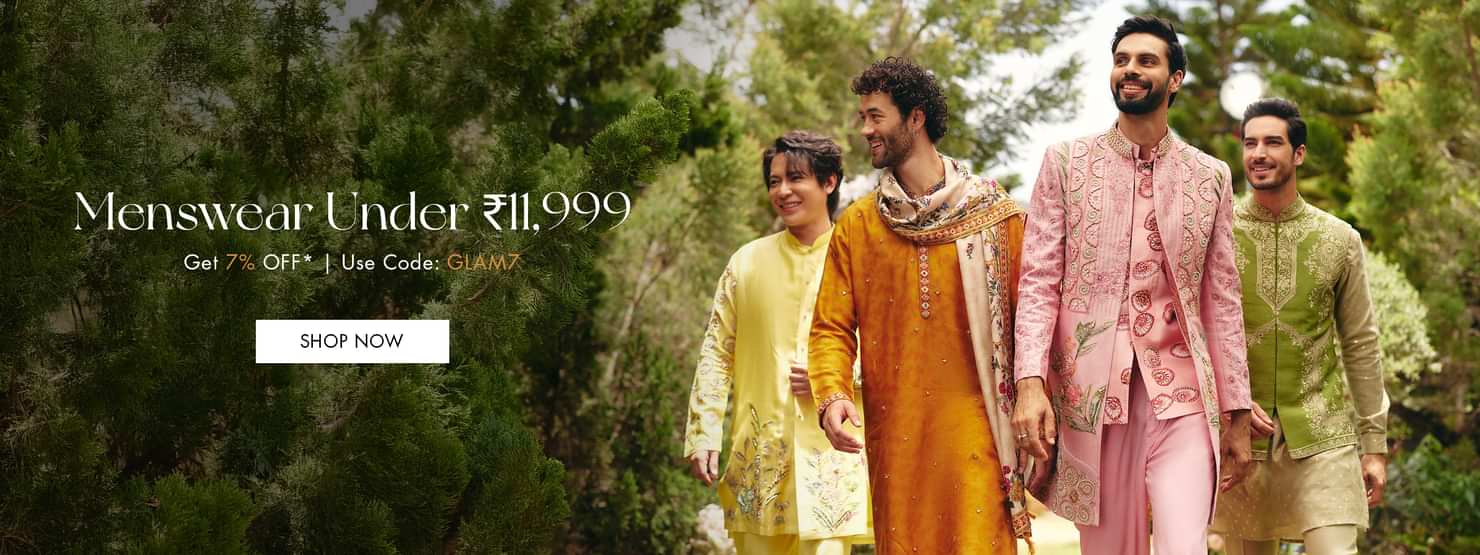 It’s time for men and grooms to experiment with refreshing hues, funky patterns, royal fabrics, and edgy structures offered by kalkifashion.com The uber-stylish range at KALKI online consists of silk kurtas sets with churidars, the Nehru jacket kurta pyjama sets, the Indo-western for men, traditional and royal sherwanis, asymmetrical kurtas, sherwanis with cowl kurtas and the wedding outfits with stoles that can offer you a contemporary twist to your ethnic look. You can create your own style statements by opting for jackets, fancy lowers, dupattas, safas and the mojaris to match. The heavy zardozi, mirror-work and lucknowi thread embroidered kurta sets and sherwanis for men at KALKI can easily help the guys slay their D-day and rituals with poise and style.