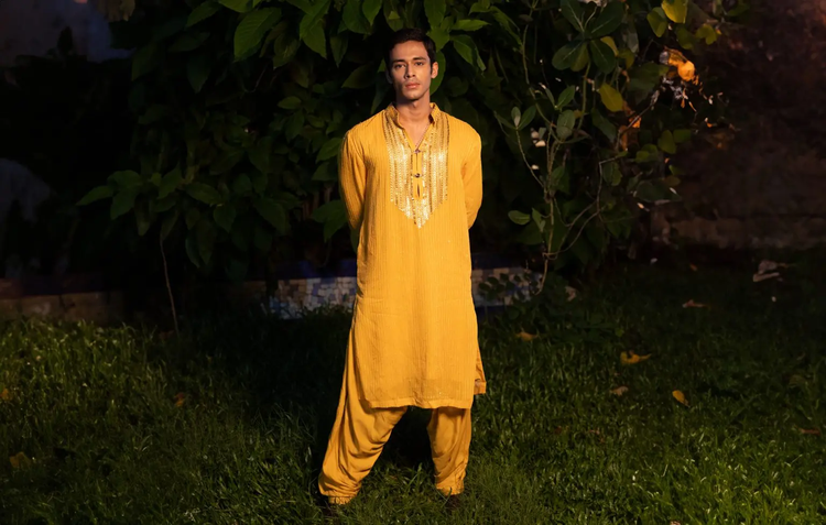 - Layer like a pro: Men’s festival wear doesn’t always mean heavy picks. A printed or textured Nehru jacket over a solid kurta = instant elevation. For night events, go structured with a bandhgala.