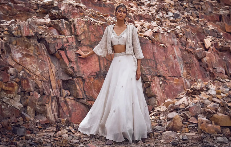 Orange is a very versatile colour that offers a vast spectrum of shades. While buying a lehenga you can choose between different shades of orange depending on your skin tone, the occasion, the weather etc. The most commonly used shades of orange are tangerine, peach, coral, saffron, apricot, honey, amber, burnt orange etc. You can opt for lighter shades like peach and coral during the summer season and go for deeper hues like burnt orange and tangerine during the winter season.
