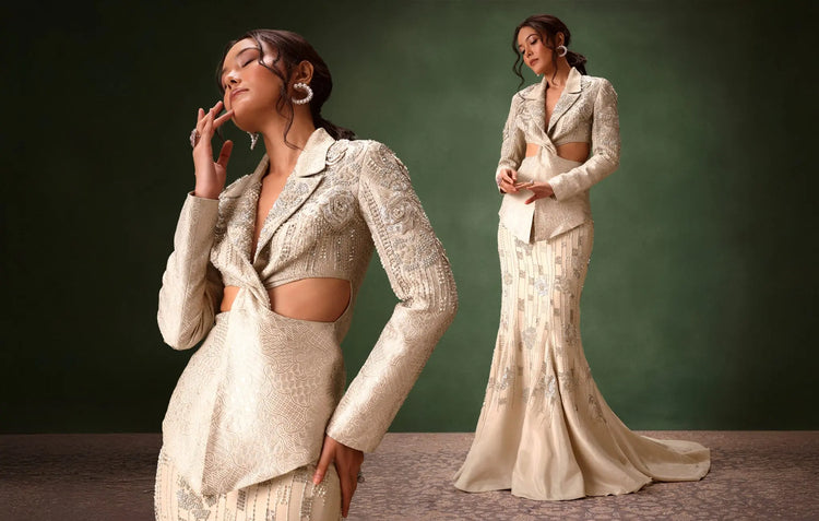 These sarees feature intricate meenakari cutwork. Unlike the typical tie-and-dye Patola sarees from Gujarat, Banarasi Patola sarees possess lustrous fabric and display geometric ikat designs.