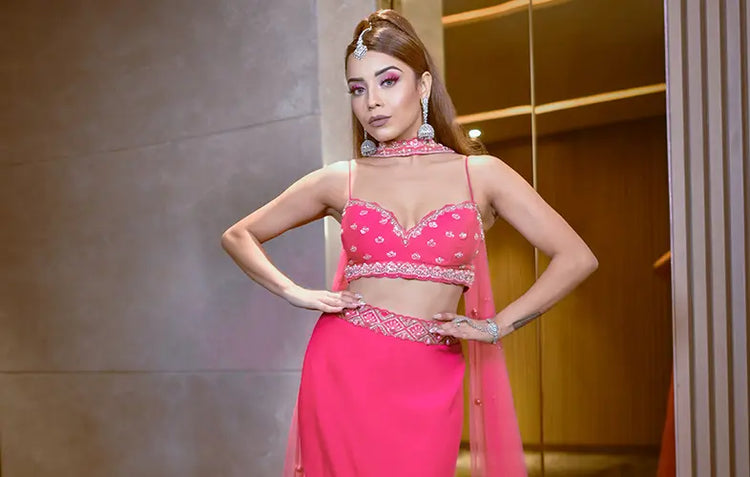 - Blouse styling- To amp up your glamour, pair your hot pink saree with a neotraditional blouse like a halter neck, a backless blouse, or even a crop top. A saree with a blazer or jacket makes you look like a fashion queen.