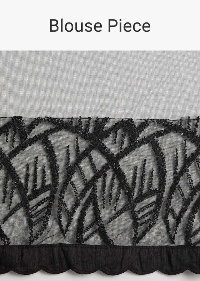 Pencil Grey Cutdana Embroidered Crepe Saree With Unstitched Blouse