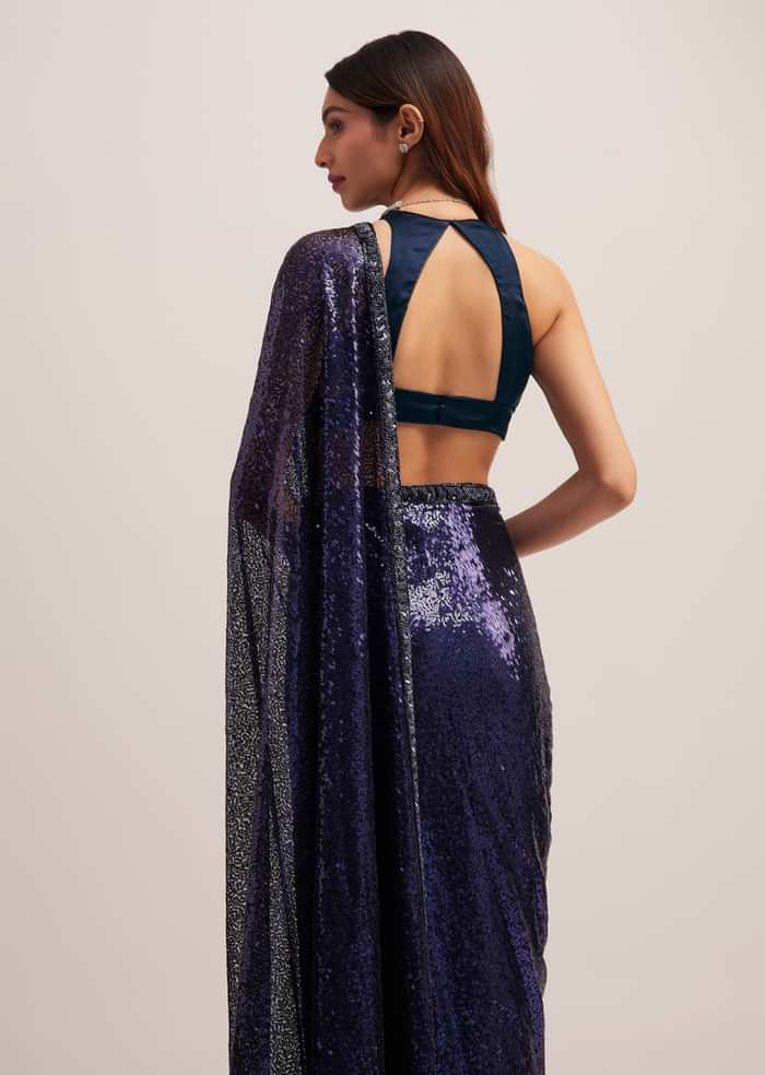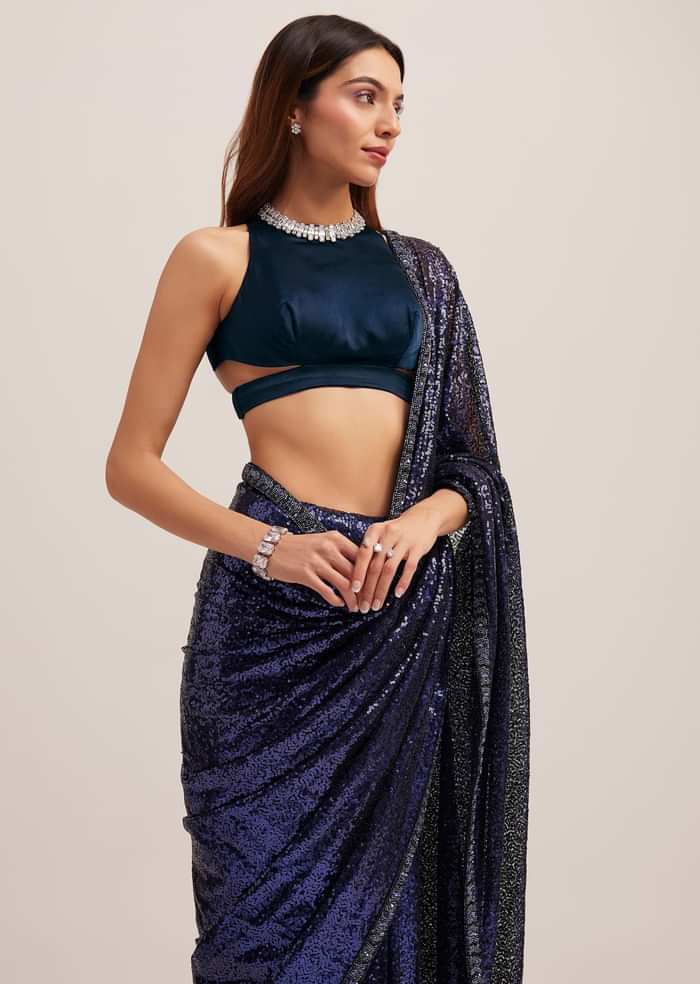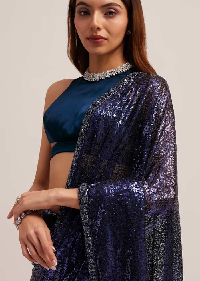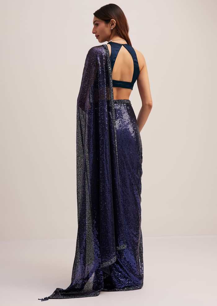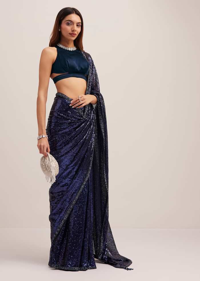 Peacock Green Crushed Tissue Saree With Cutdana And Sequin Border With Unstitched Blouse