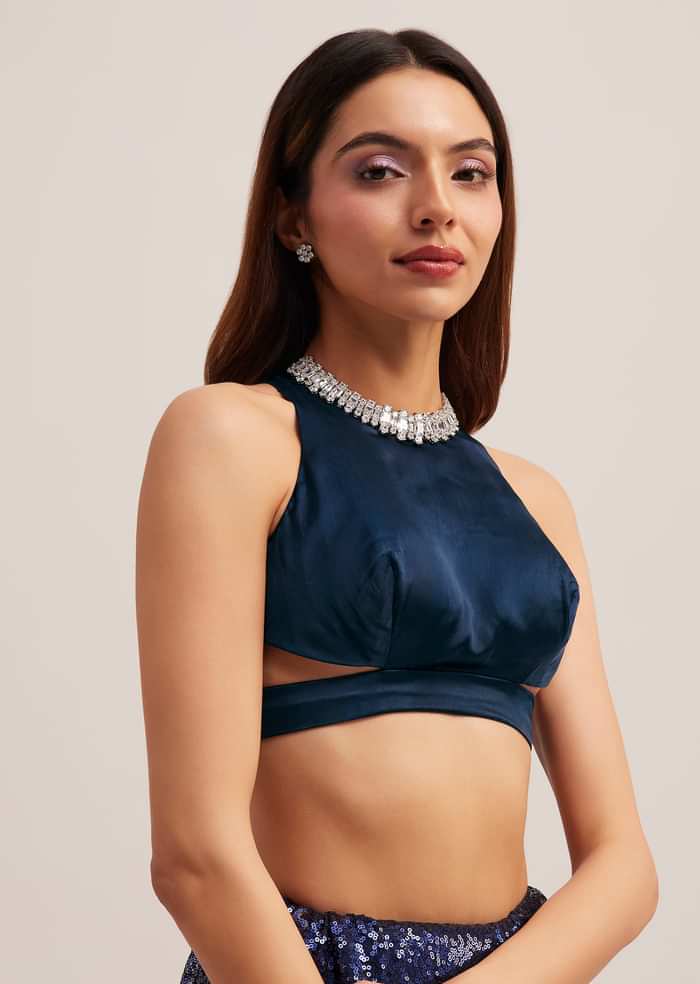 Sky Blue Embroidered Tissue Saree With Unstitched Blouse