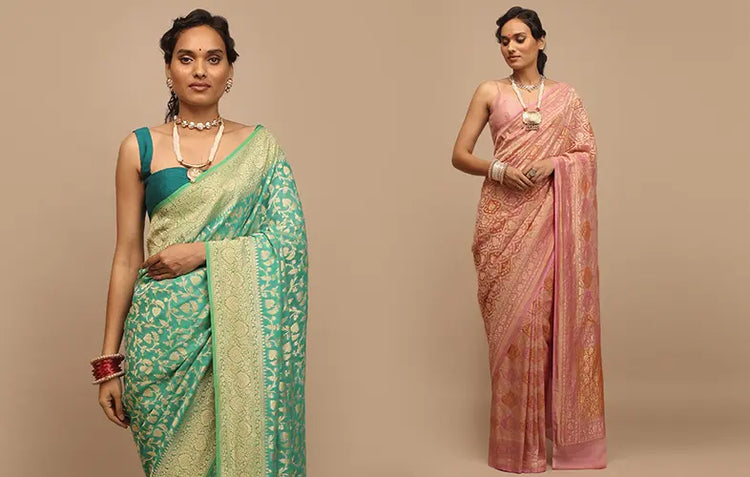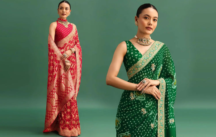 Ethnic sarees like bandhani saree, gharchola saree, gota work sarees, chanderi sarees, silk sarees, and kundan embroidered border sarees are the most popular sarees for the Teej festival. They symbolise our rich culture and traditions and are a bang-on option for the festive occasion.