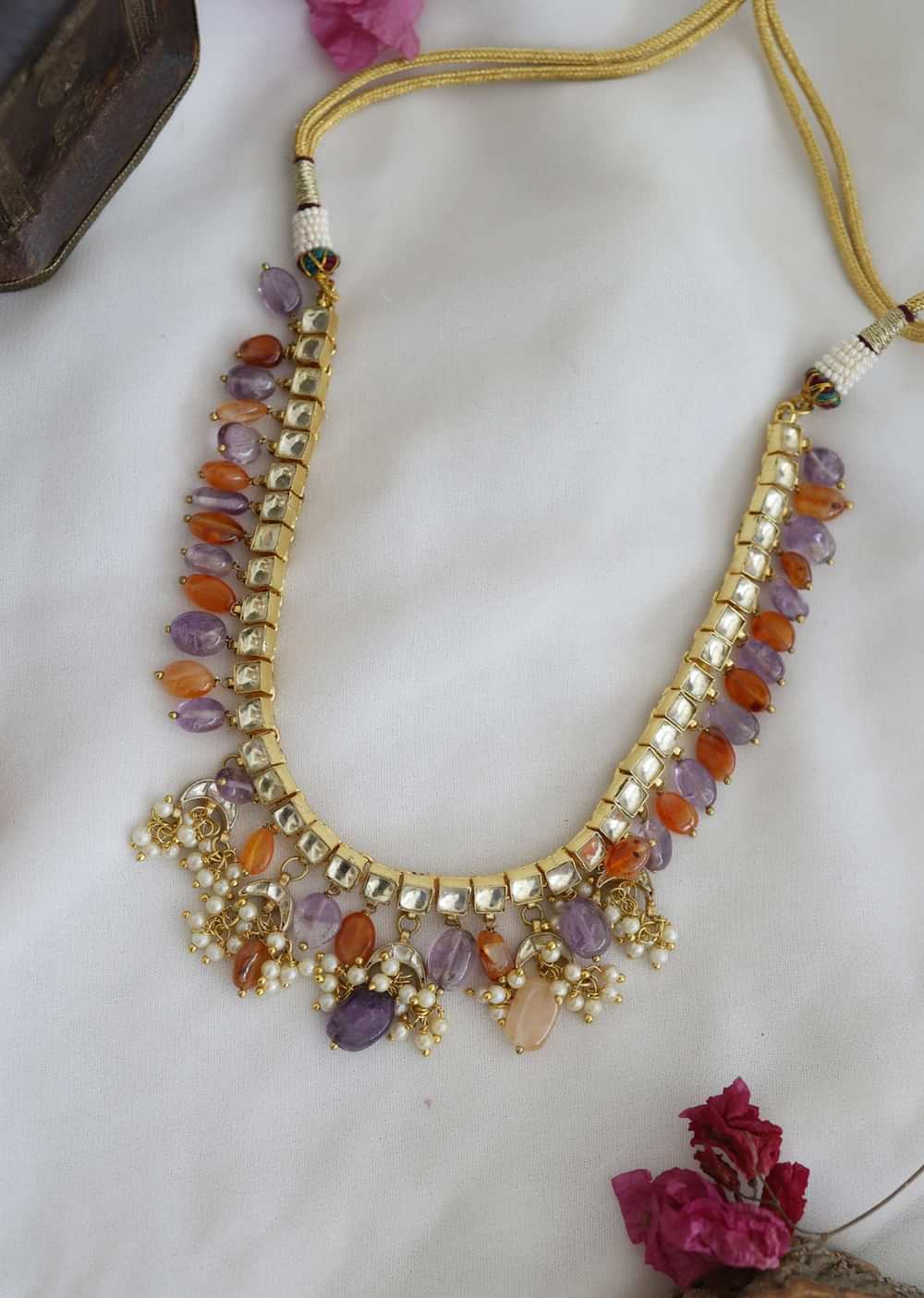 22K Gold Plated Kundan Necklace With Natural Stones