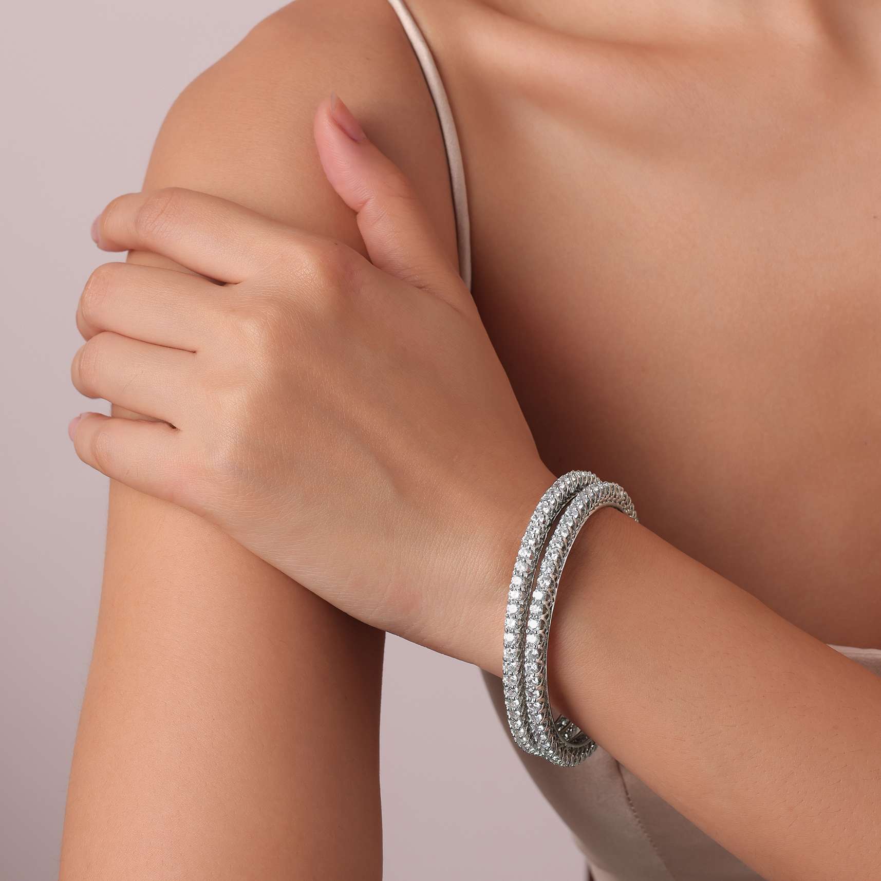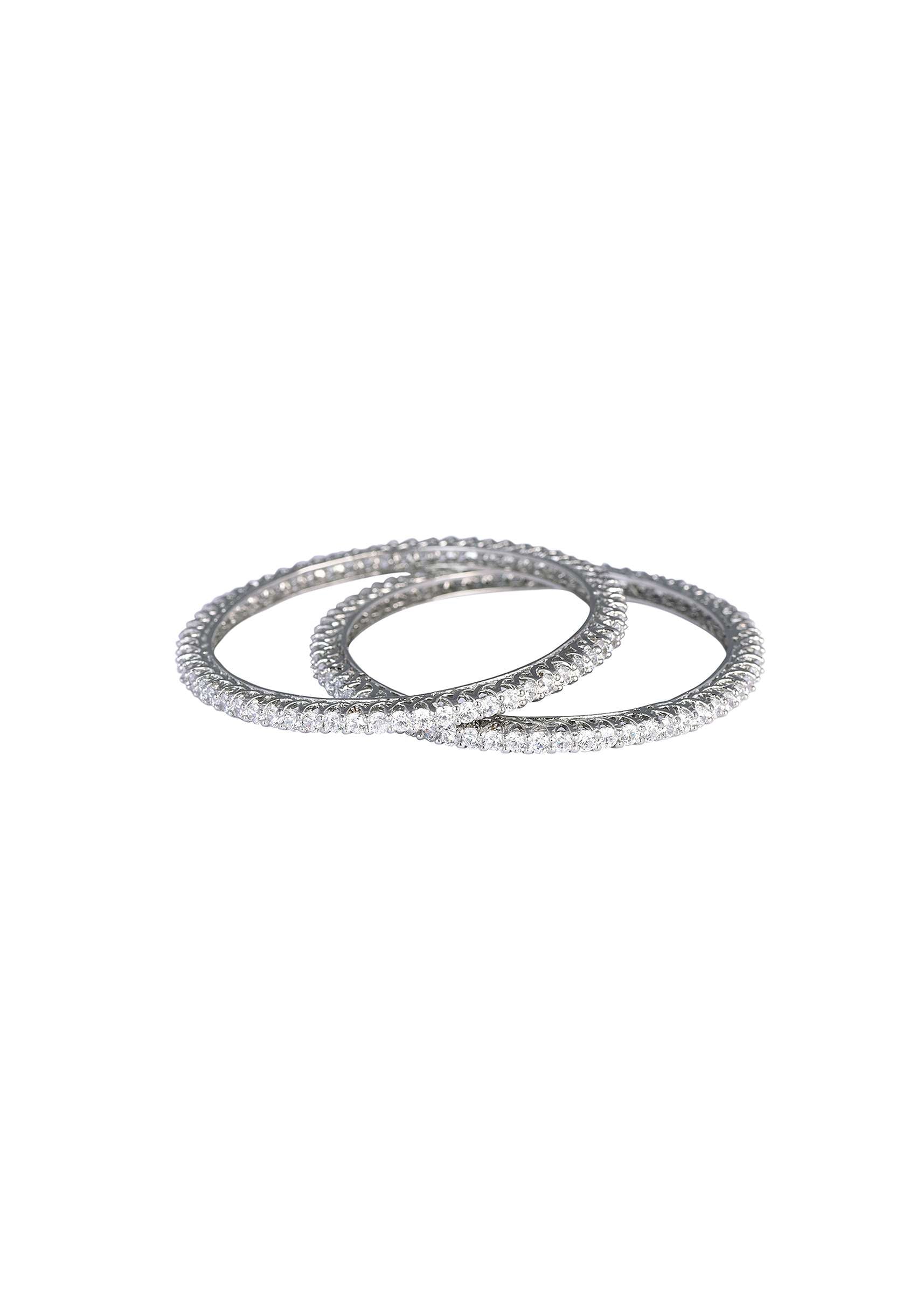 92.5 Sterling Silver Bangles With Studded Zirconia Stones Set of 2