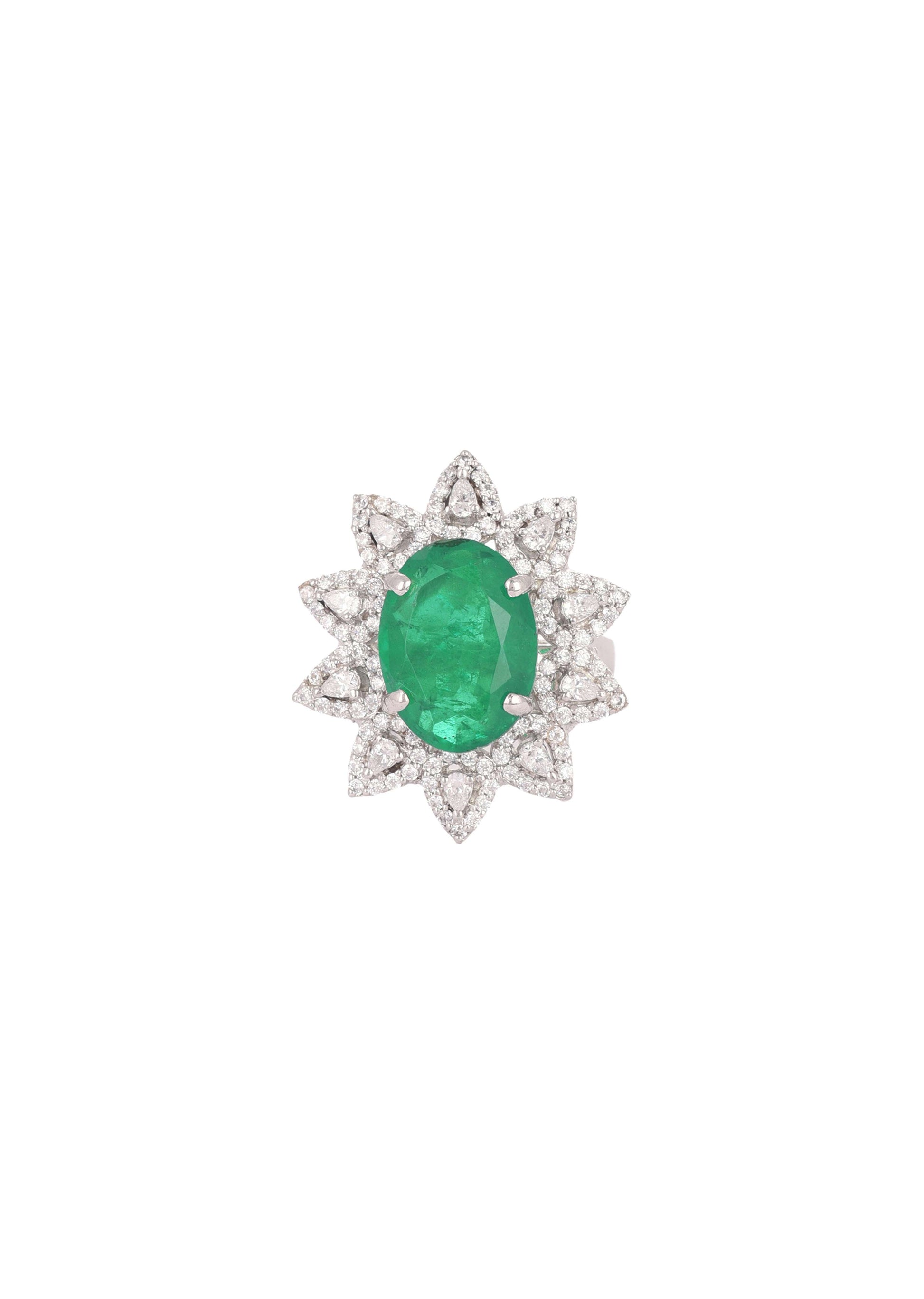 - Framed in a floral design it is adorned with an oval-shaped emerald in the center... More Product Details