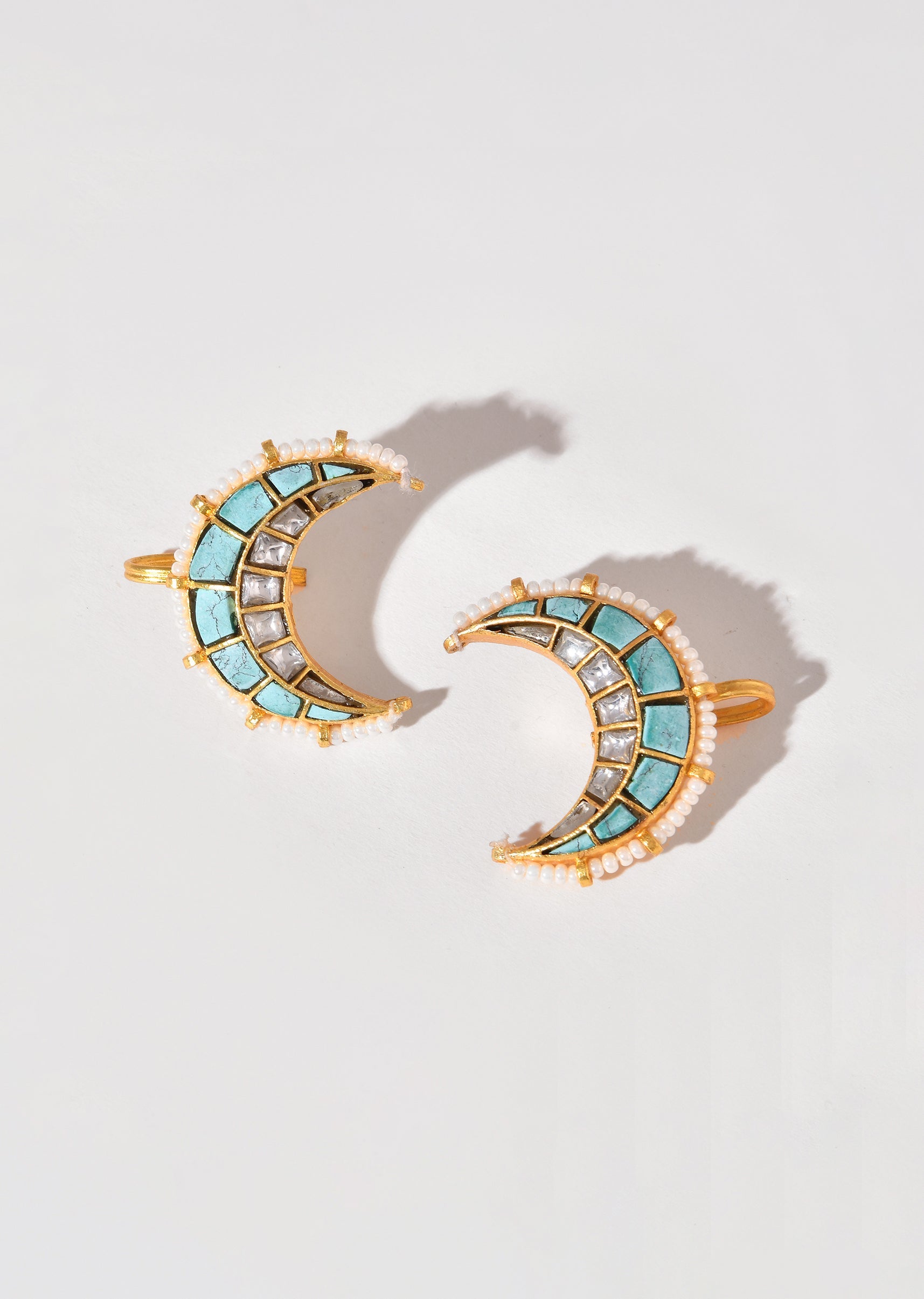 These aqua blue and gold earrings feature intricate pachi kundan work with detailed kundan embellishments for a festive and elegant appeal. Perfect for weddings and special celebrations, they add sophistication... More Product Details