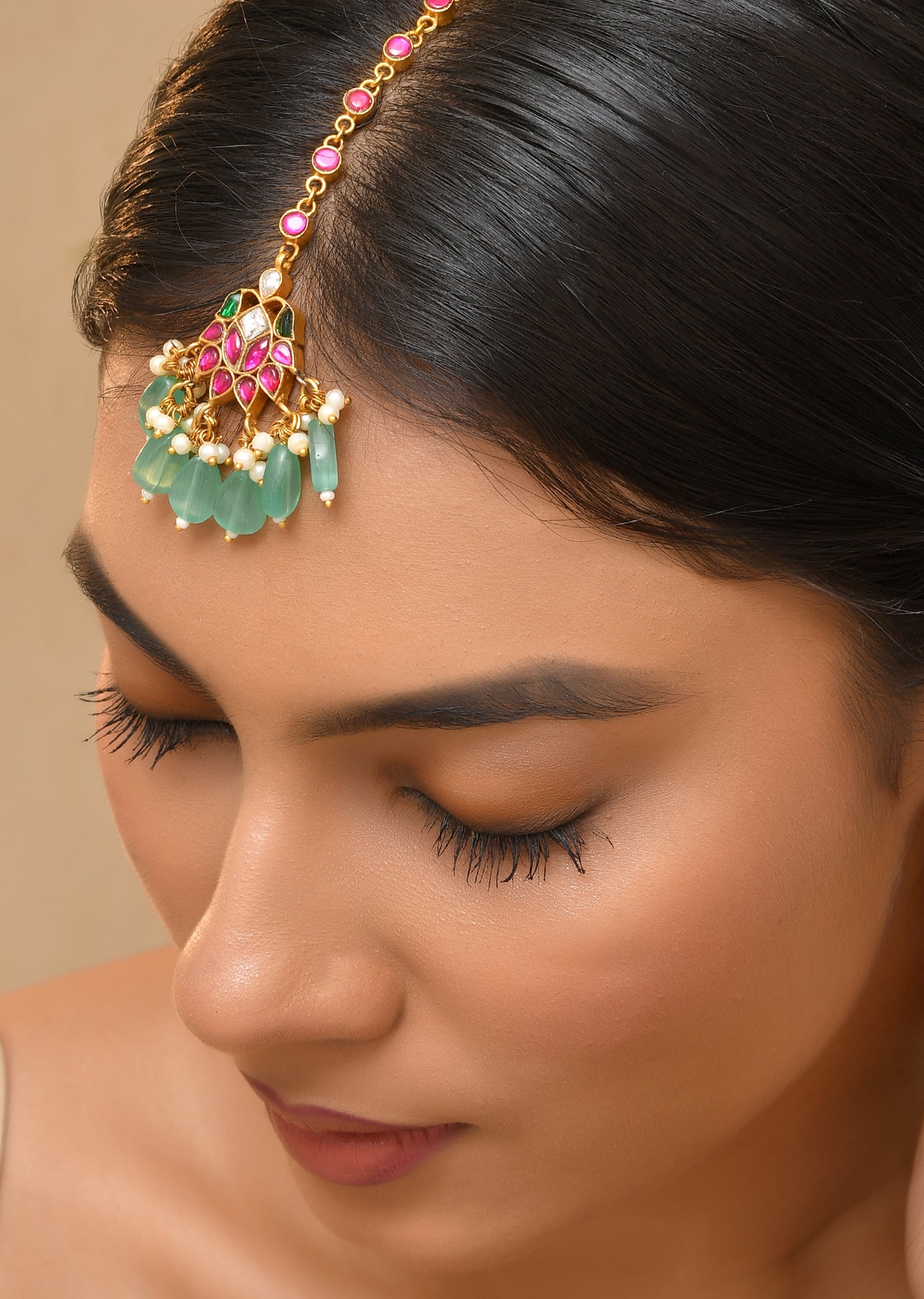 Aqua Blue Kundan Maangtikka with Bead Drops