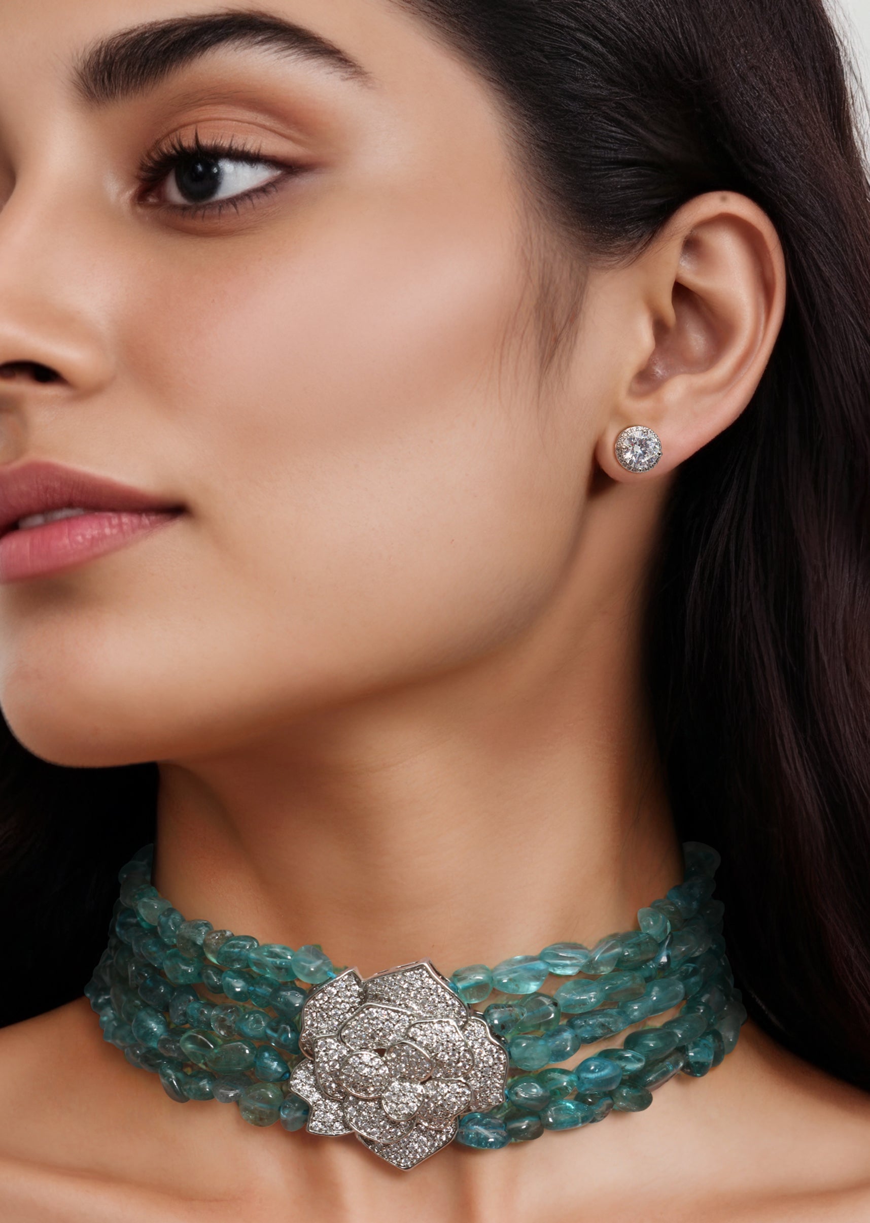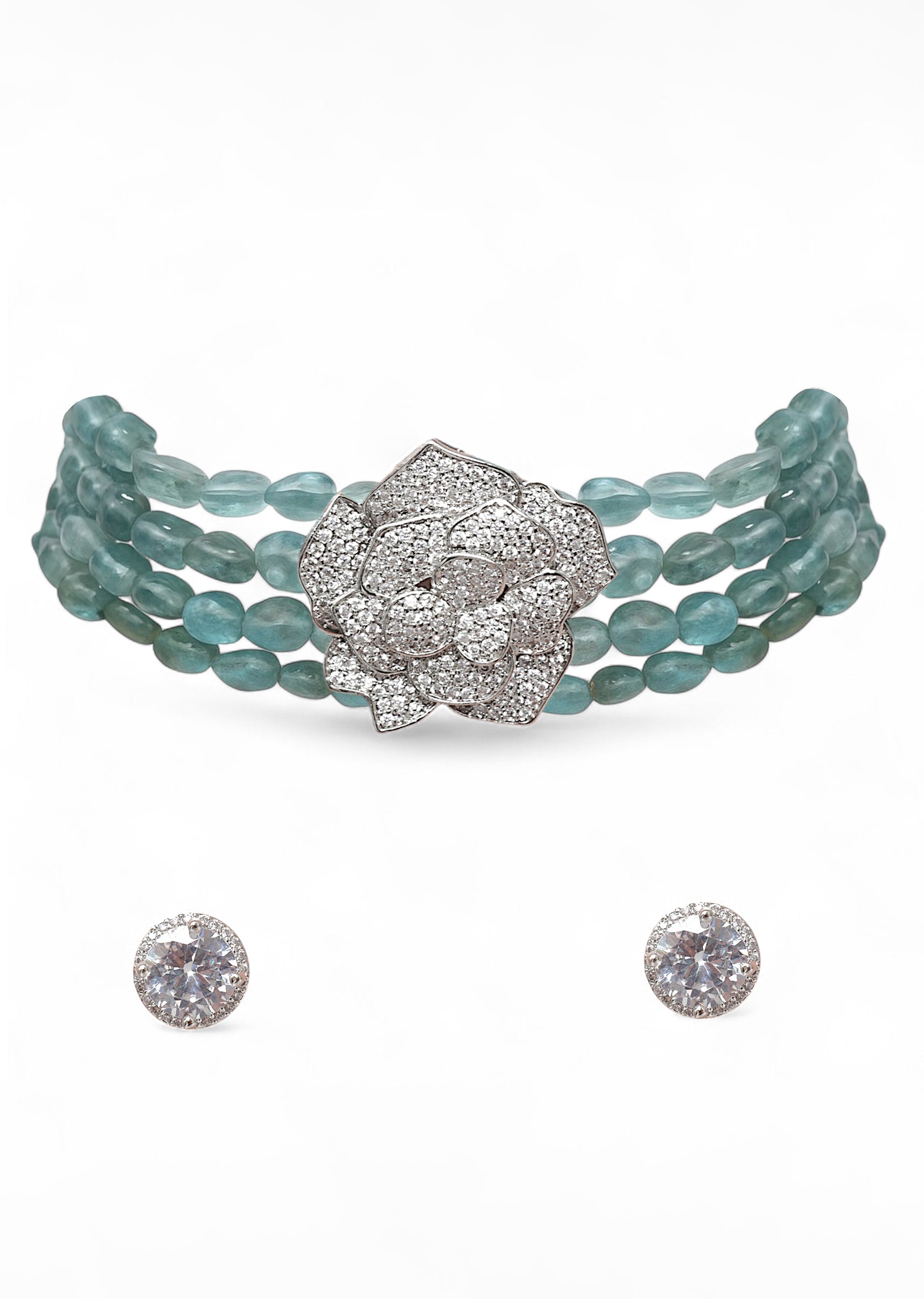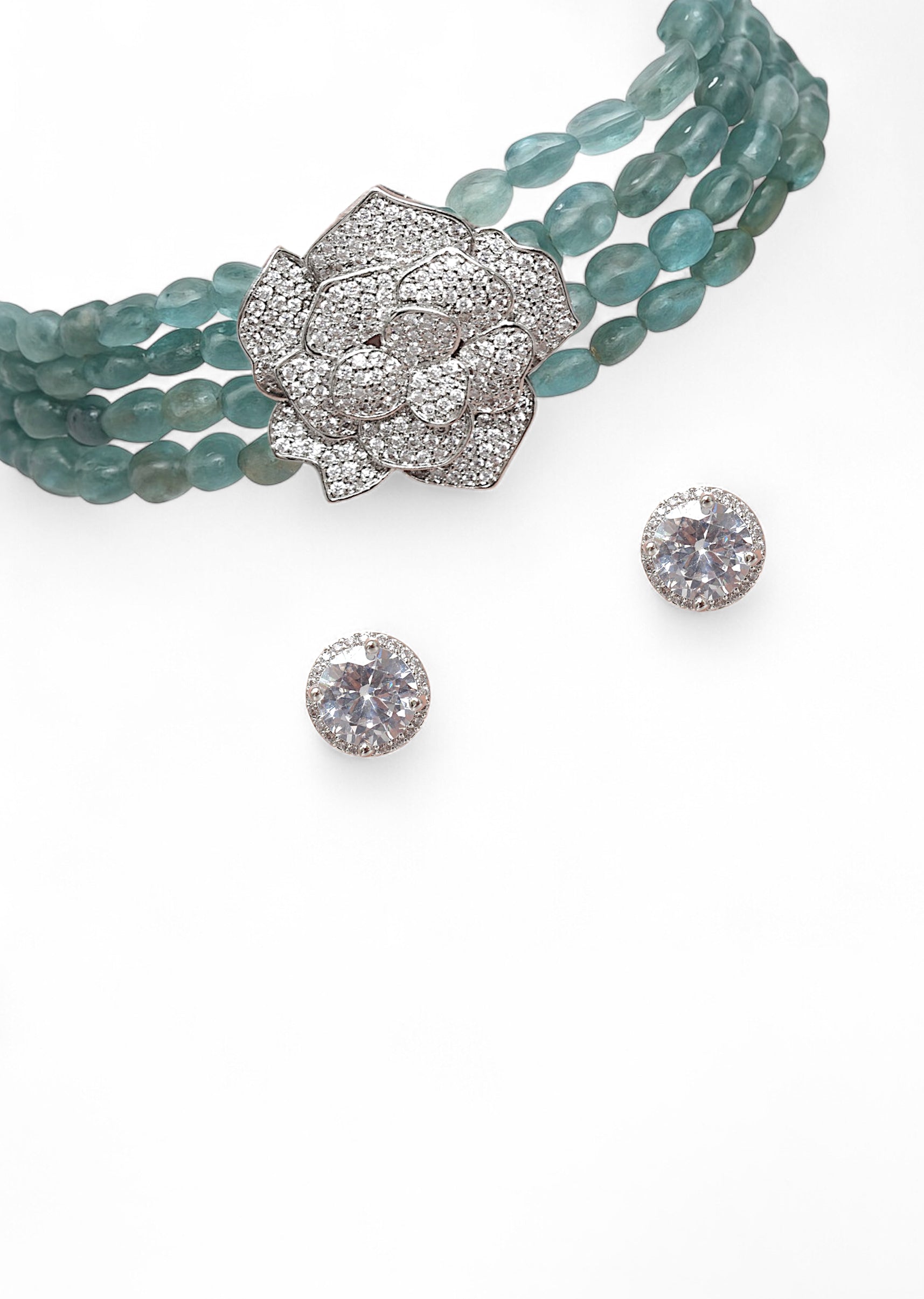 An aqua blue zircon pendant necklace set featuring shimmering zircon stones and delicate craftsmanship, exuding modern sophistication with a refreshing touch of color. Perfect for adding an elegant and graceful... More Product Details
