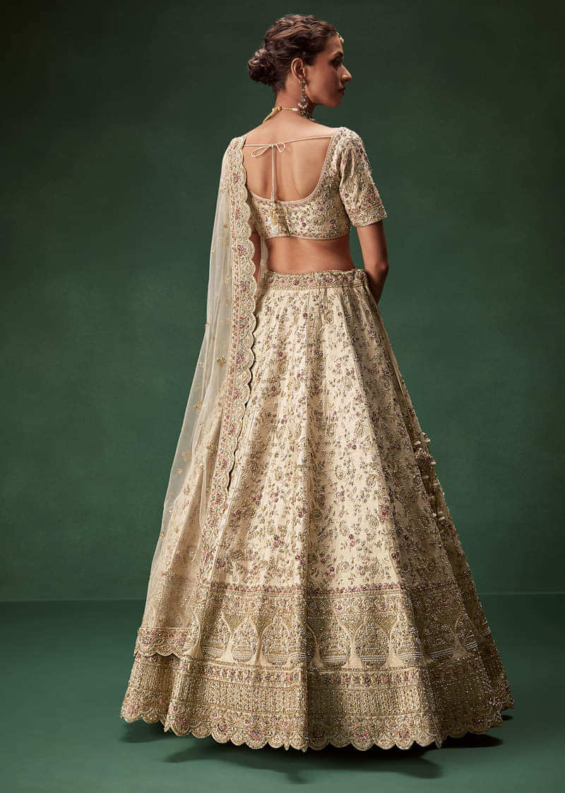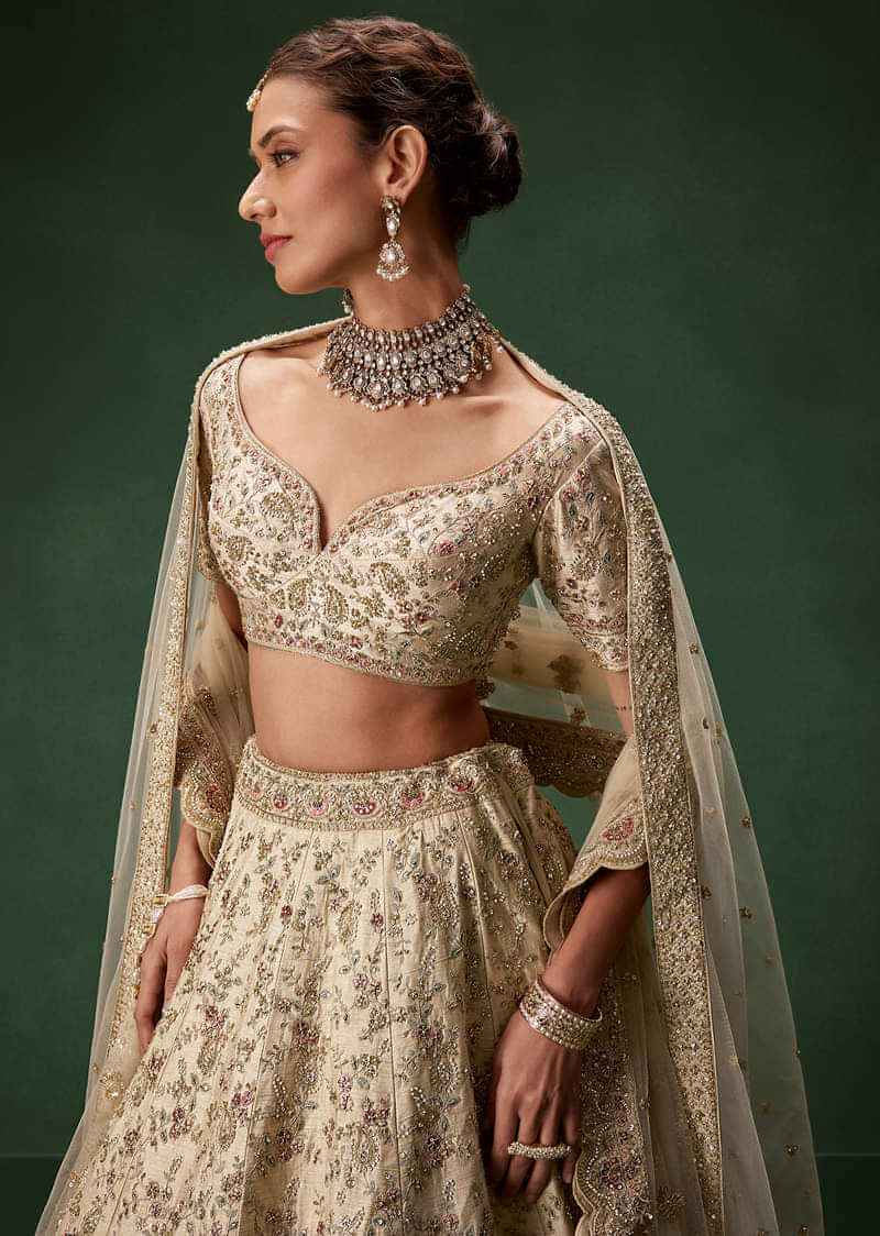 Beige Bridal Lehenga With Sequin And Zari Work