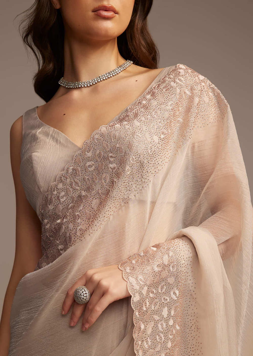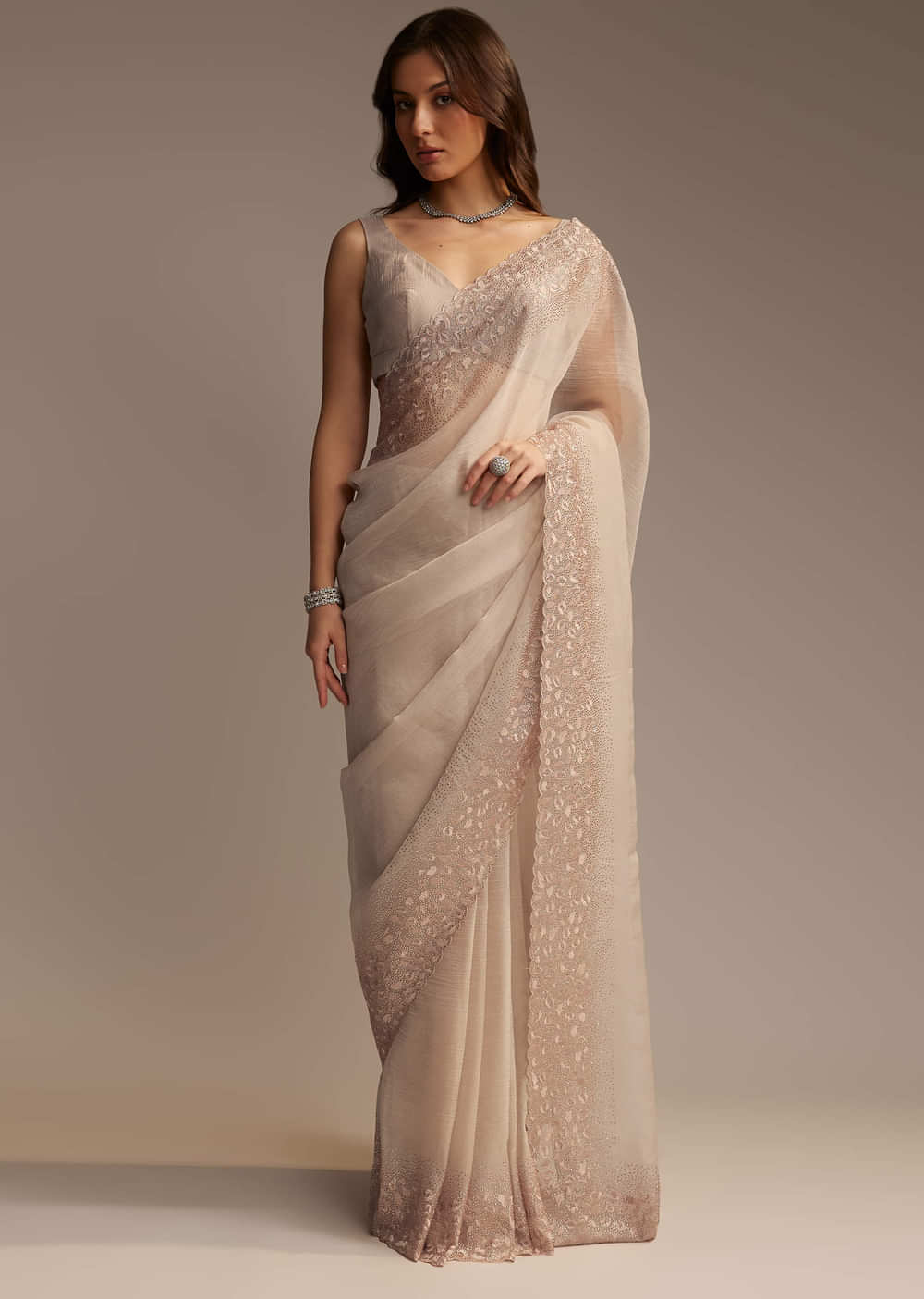 Beige Chiffon Embellished Saree with Resham Cutwork