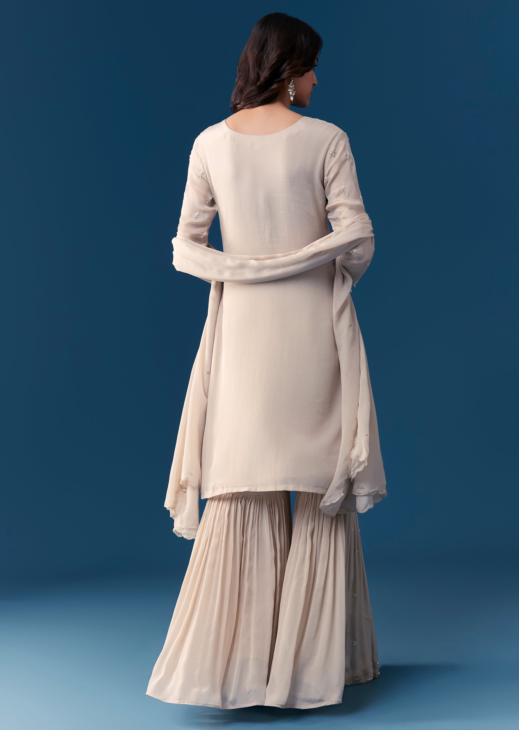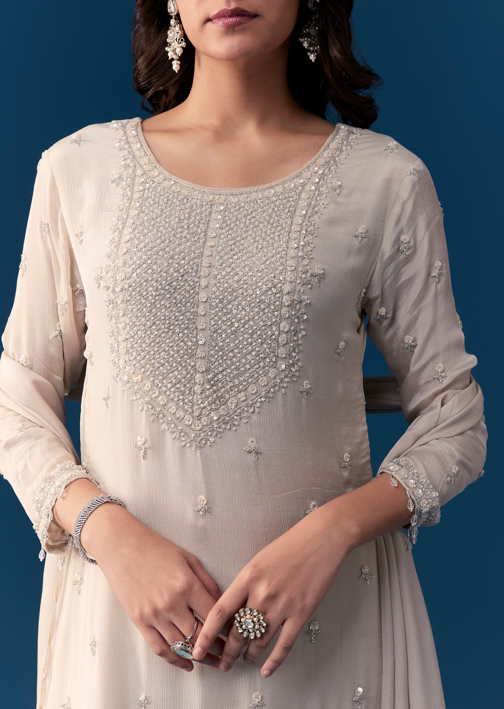 Beige Chinon Sharara Set With Cut Dana And Sequins Work