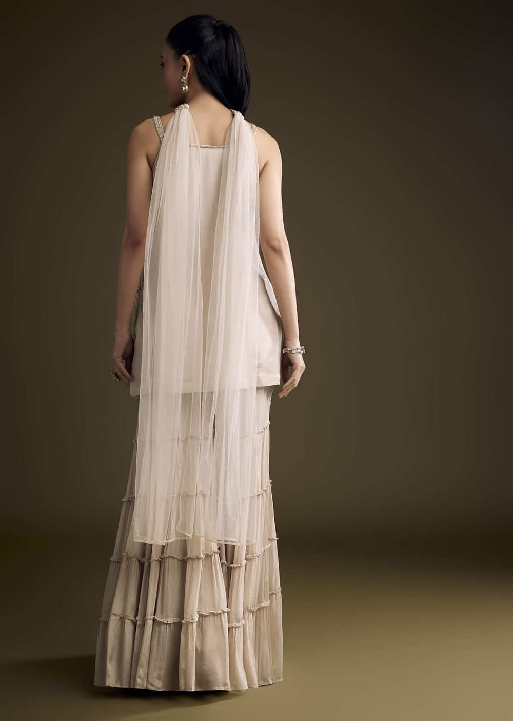 Beige Chinon Sharara Suit With Sequins And Moti Work