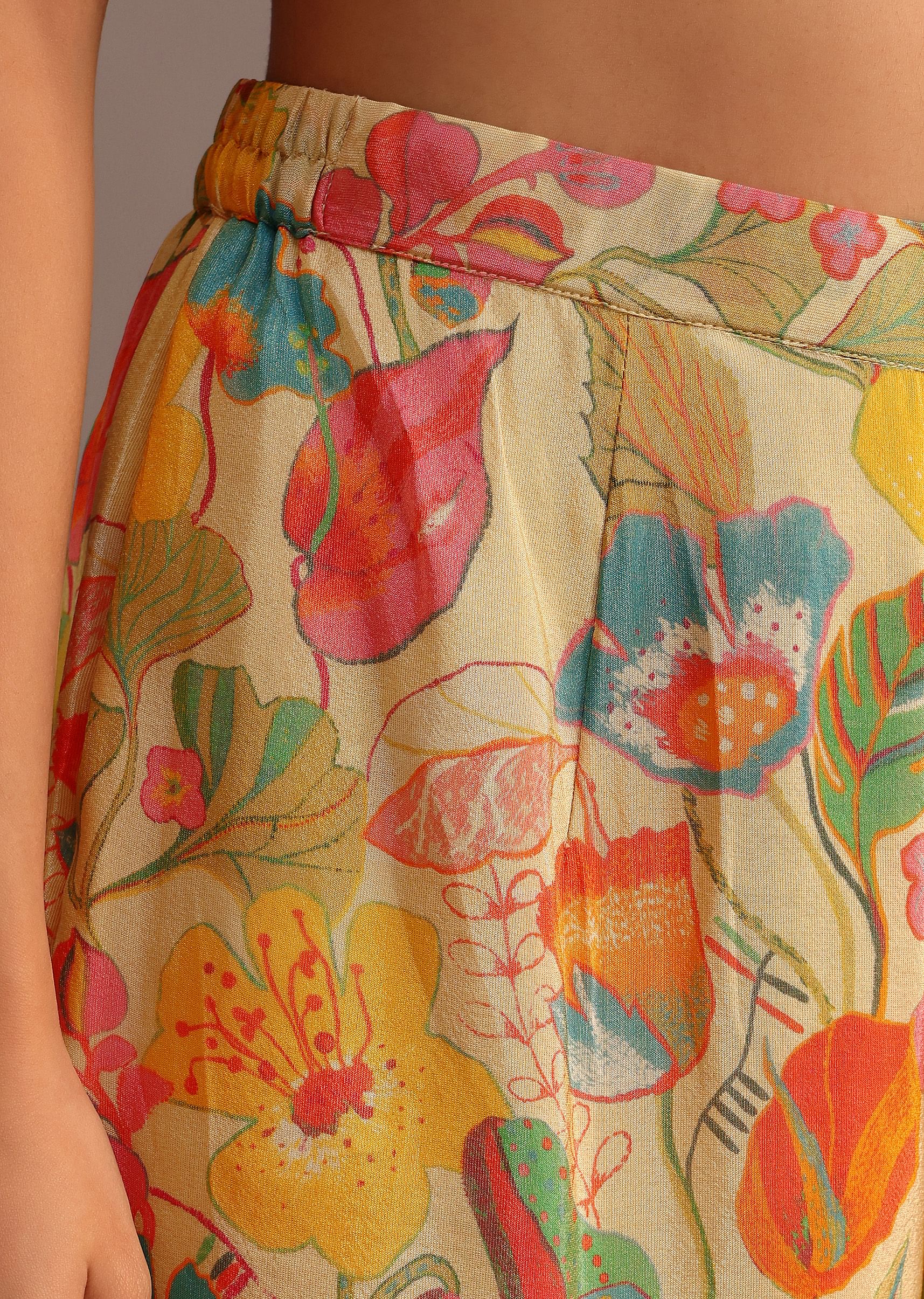 Beige Floral Printed Kurti Sharara Suit With Tissue Dupatta
