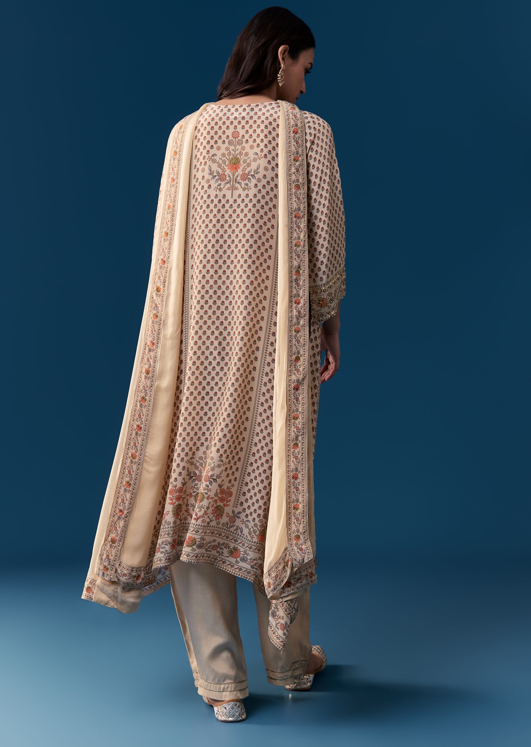 Pair it with embroidered juttis and delicate statement earrings to complete a festive look.