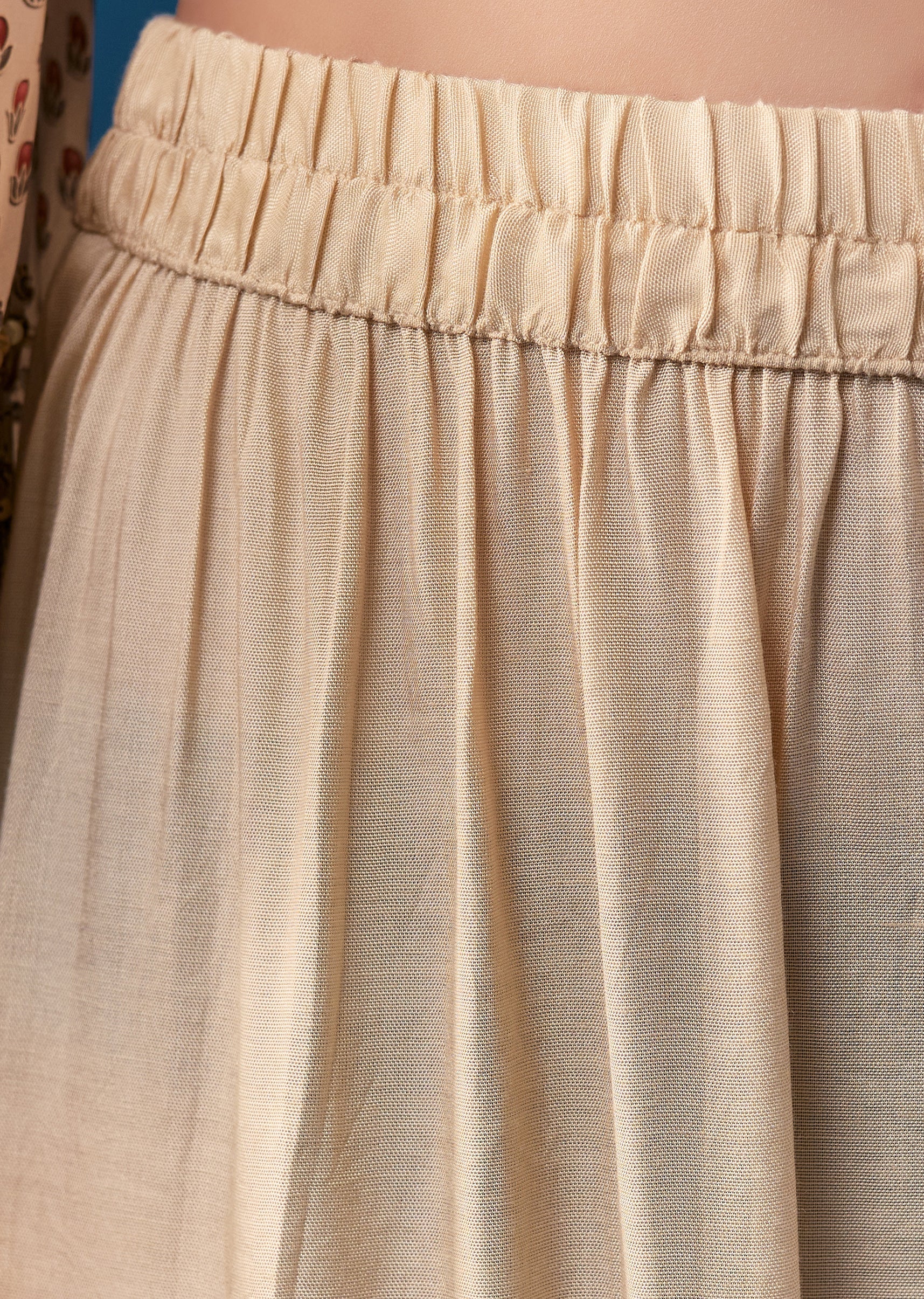 The notched neckline should sit comfortably without gaping, and the asymmetric kurta should fall smoothly over the body allowing ease of movement.