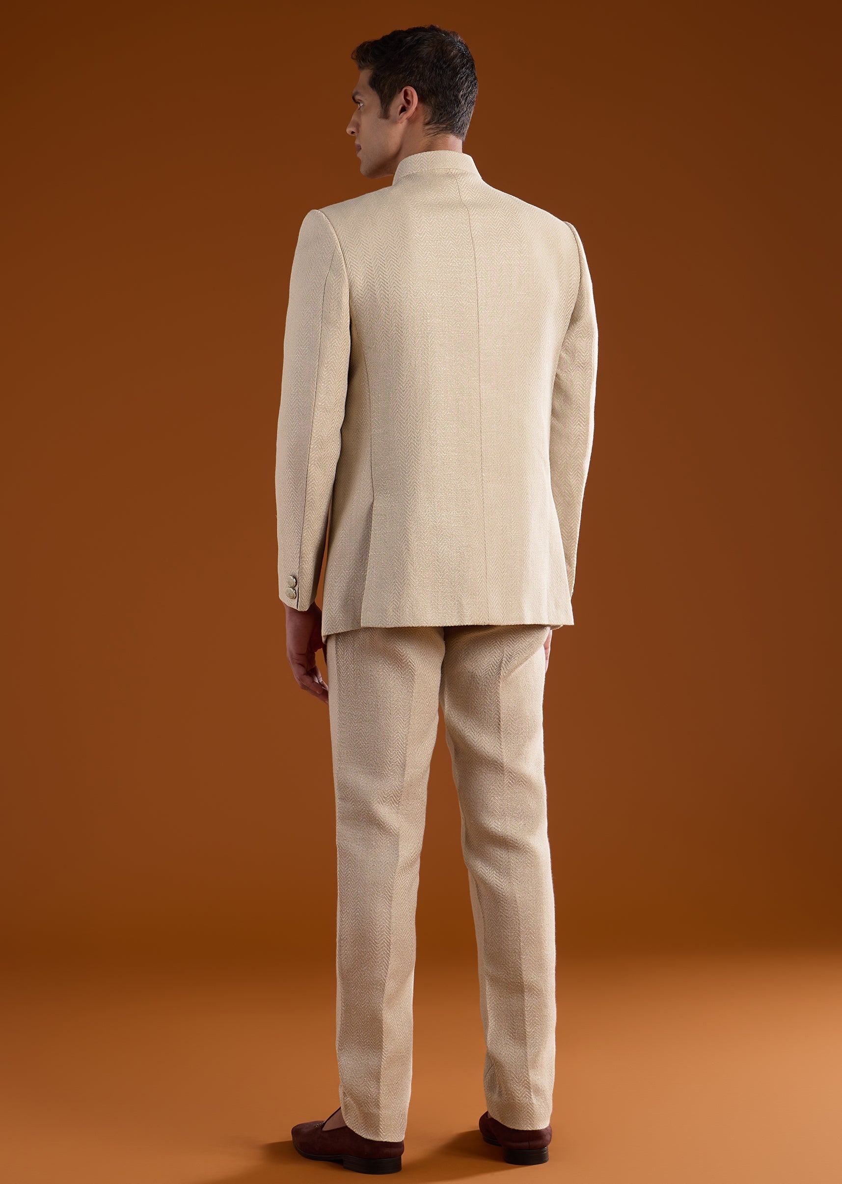 Beige Matka Silk Zardozi Embroidered Jodhpuri Set