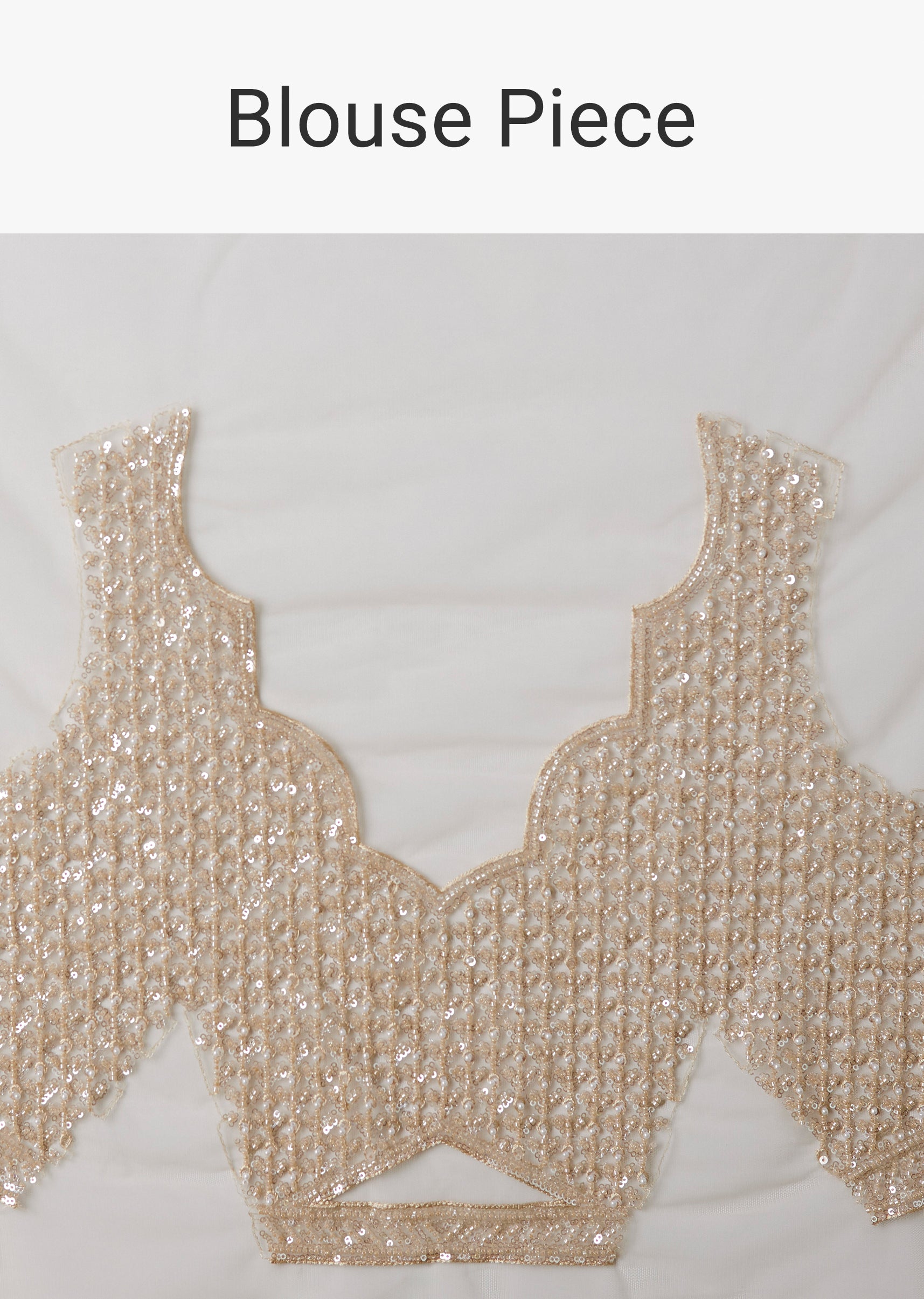 Beige Net Floral Jaal Bead Work Saree with Unstitched Blouse