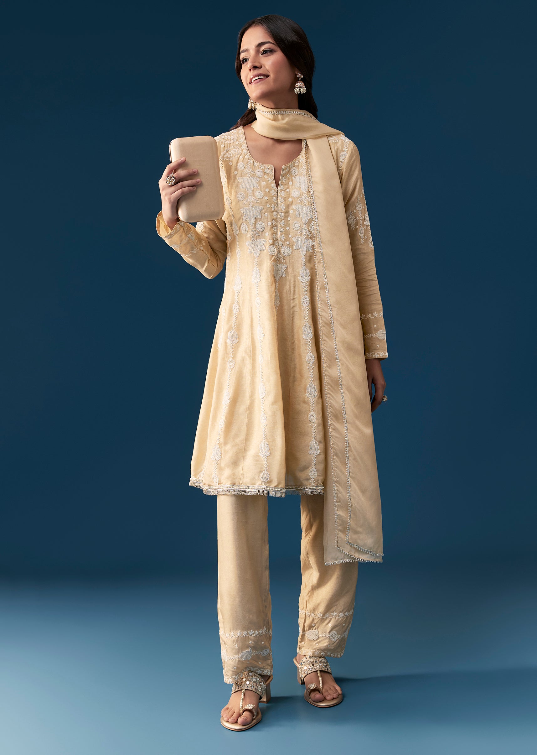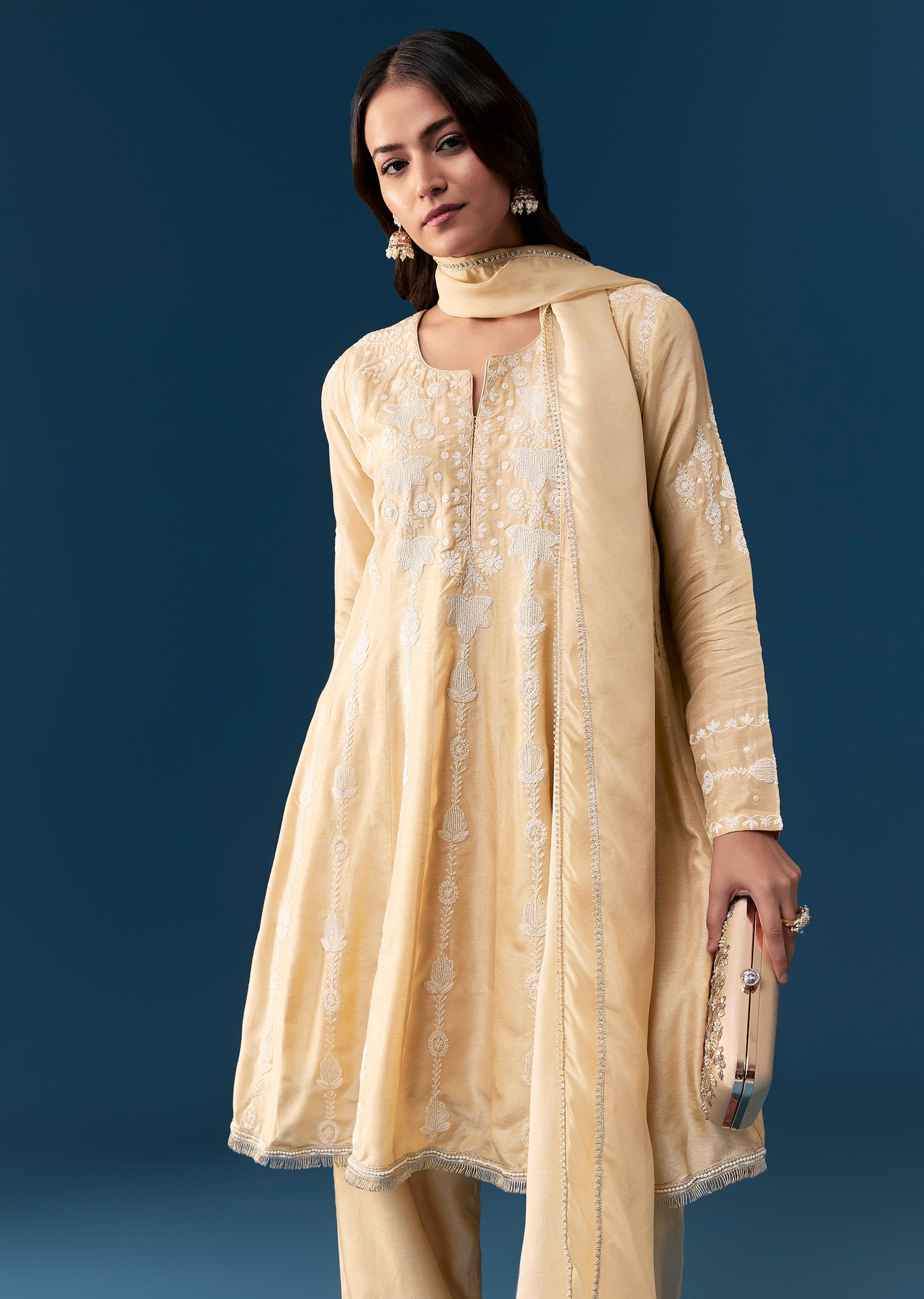 Style Tip Pair it with pearl earrings metallic heels and a delicate clutch for a sophisticated finish Fit Tip The peplum waist defines the figure while the flowing anarkali skirt and notched neckline provide comfortable coverage and a flattering shape
