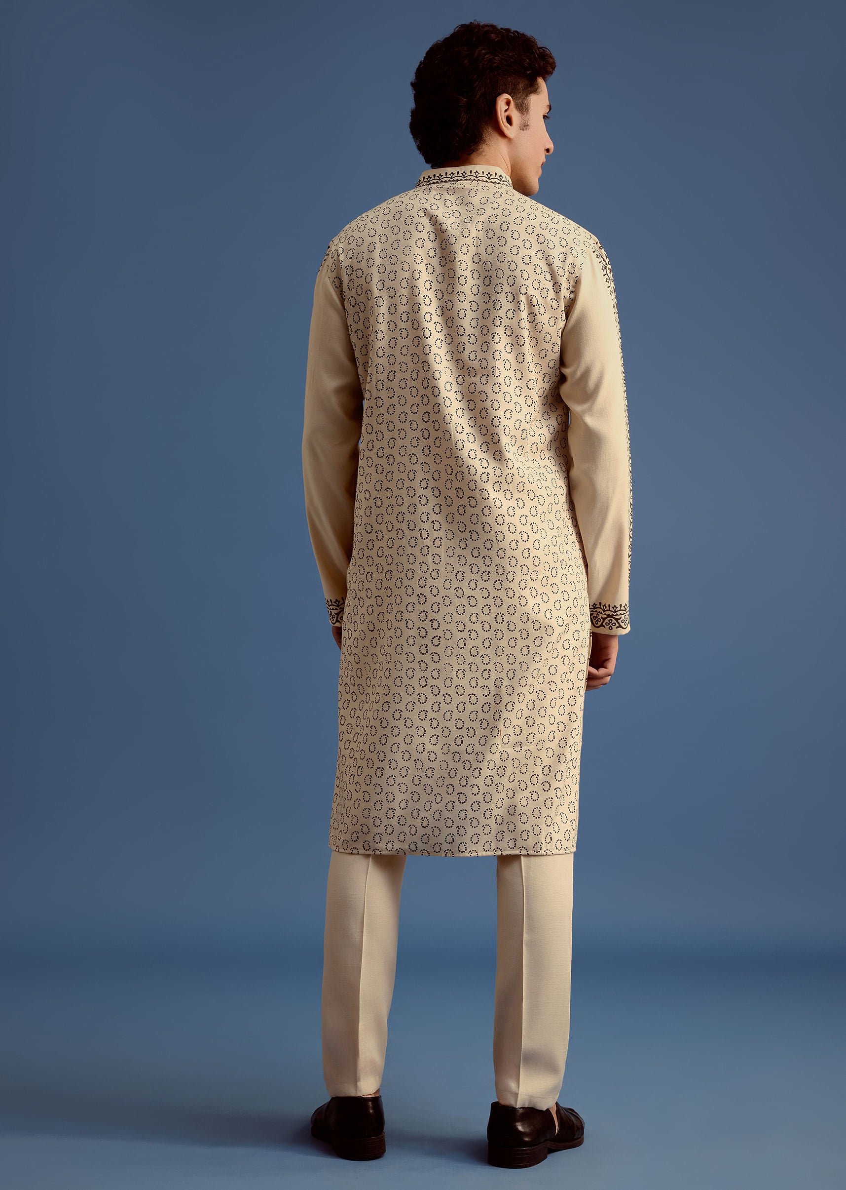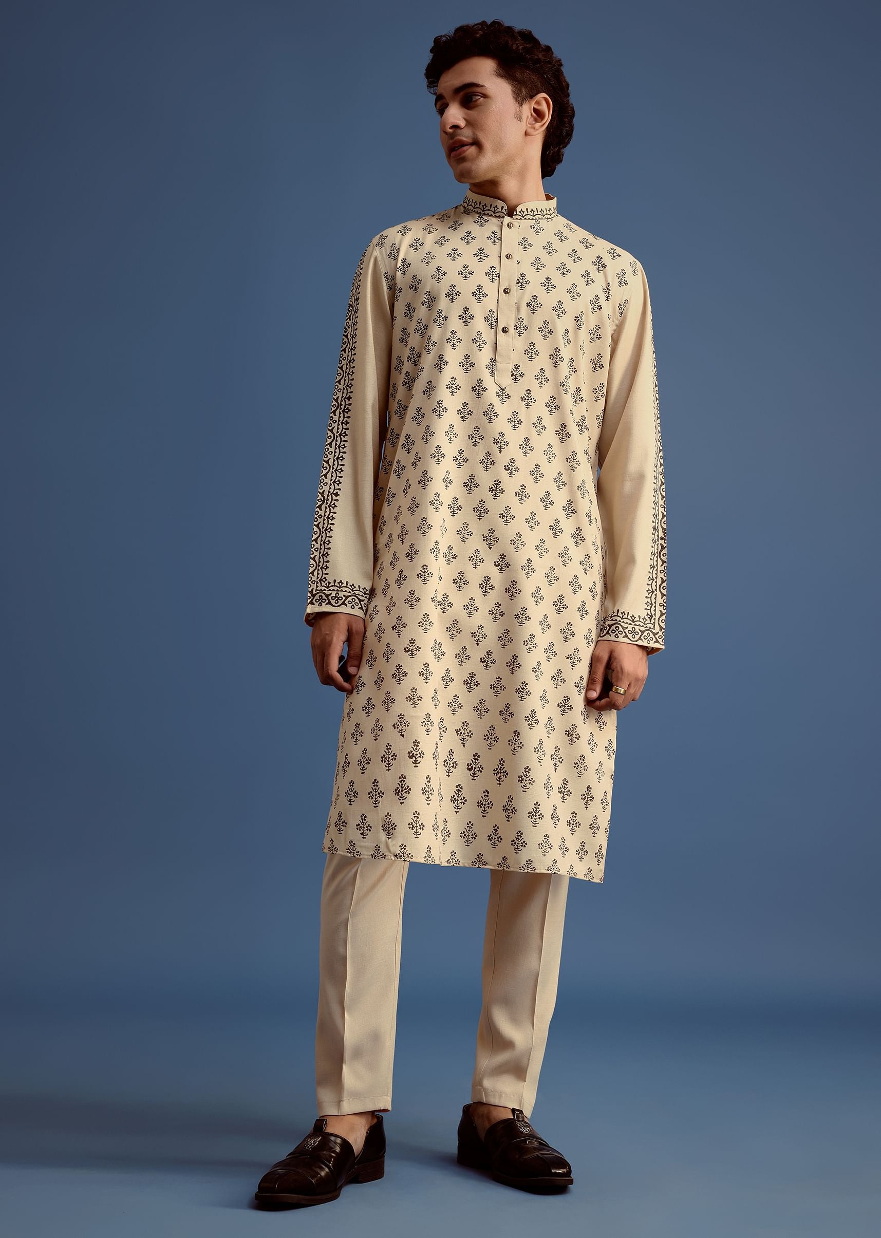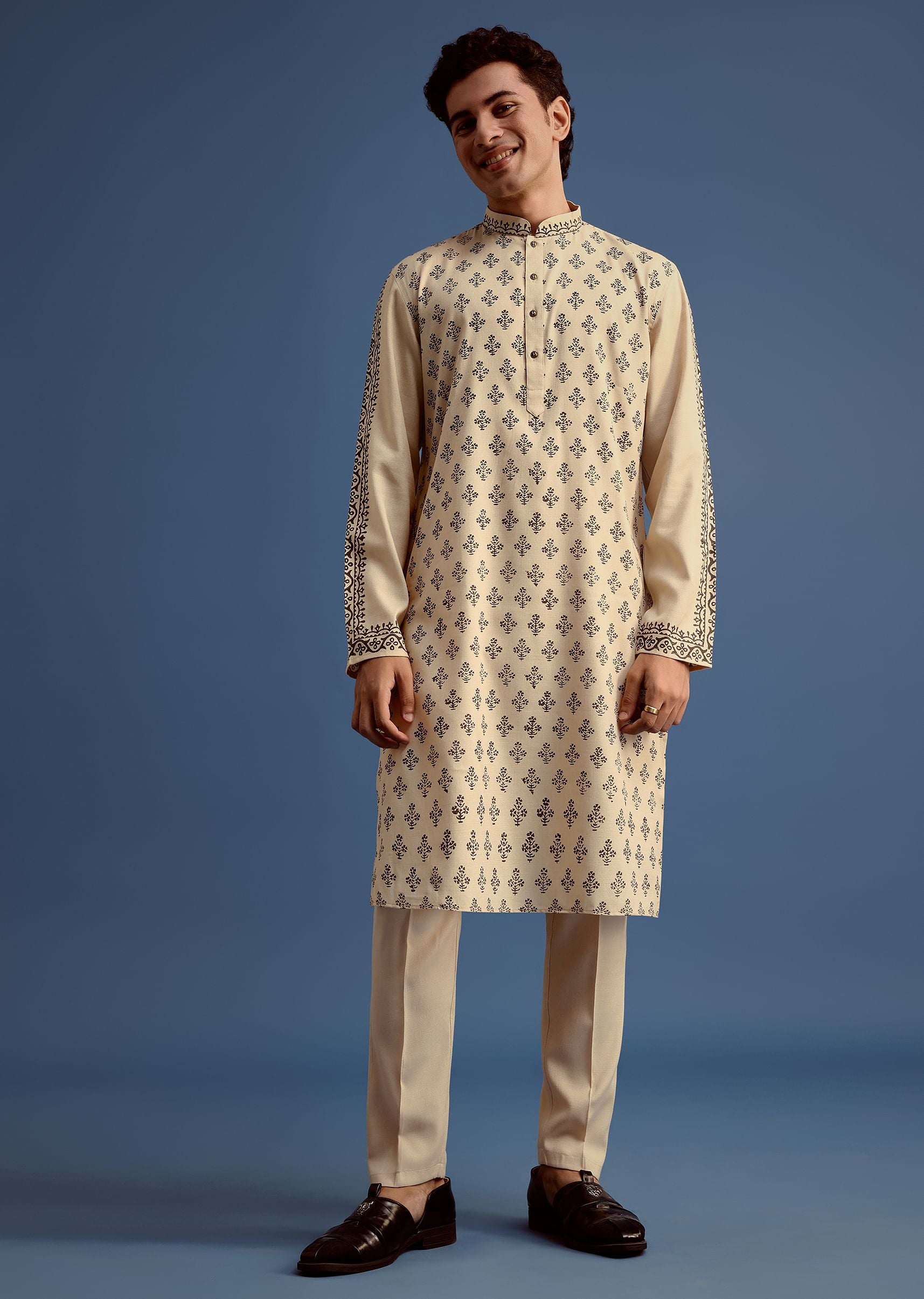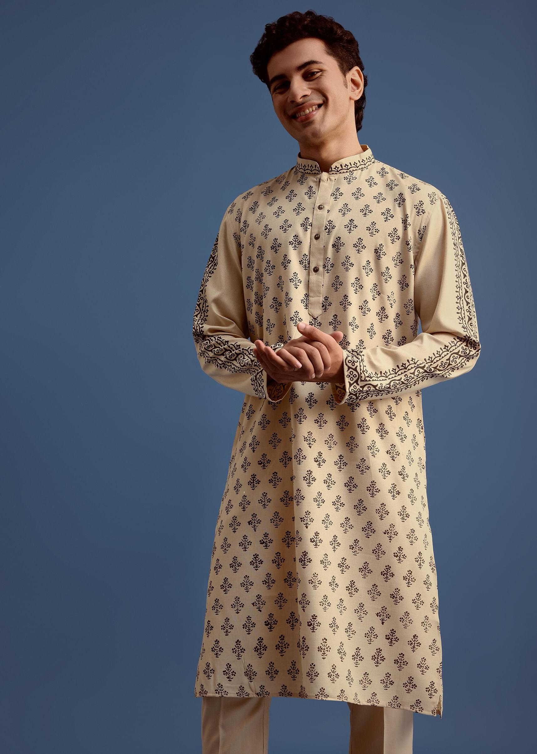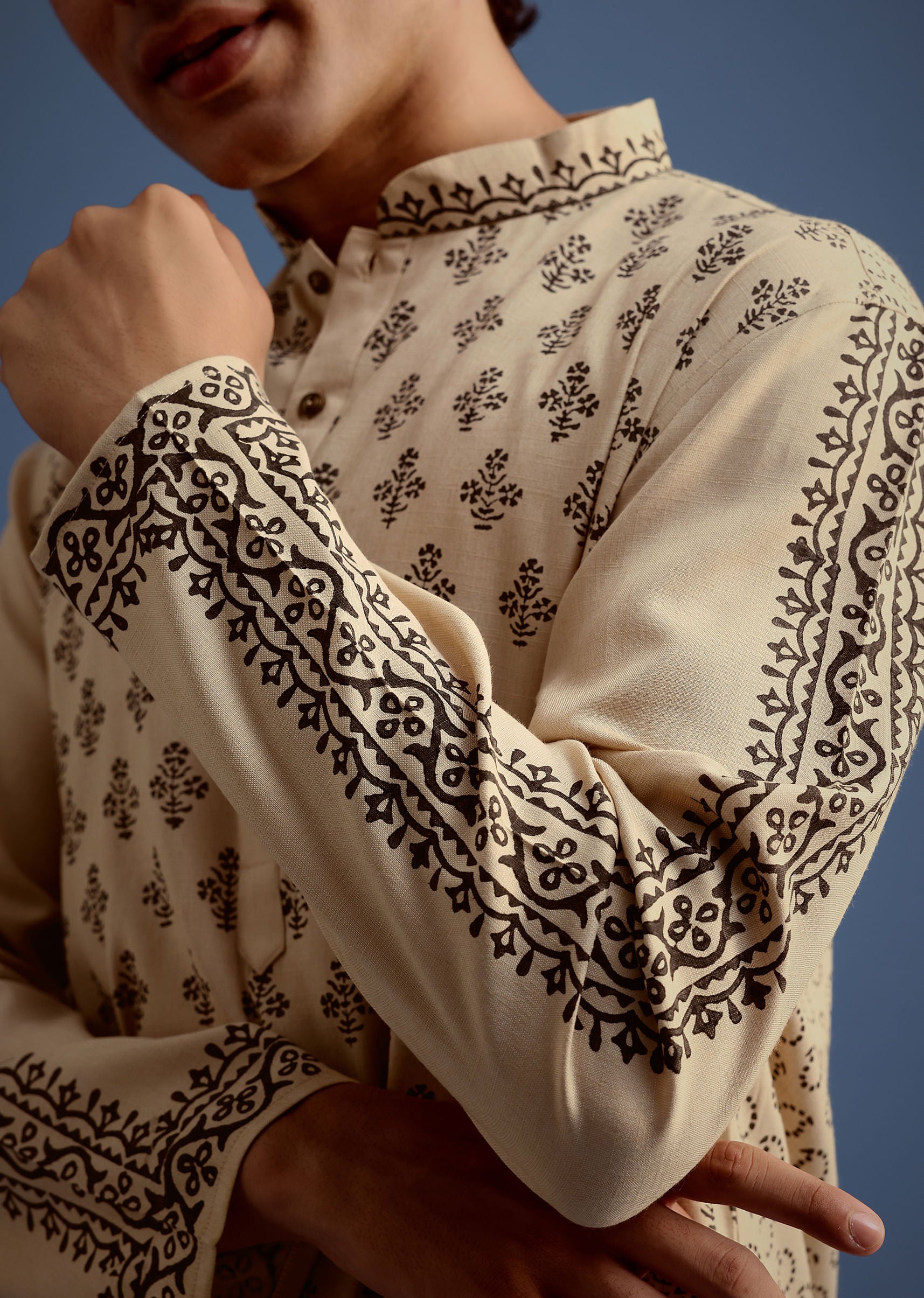- Exqusite artistry of Indian craftsmanship with our beige hand block printed kurta set.
