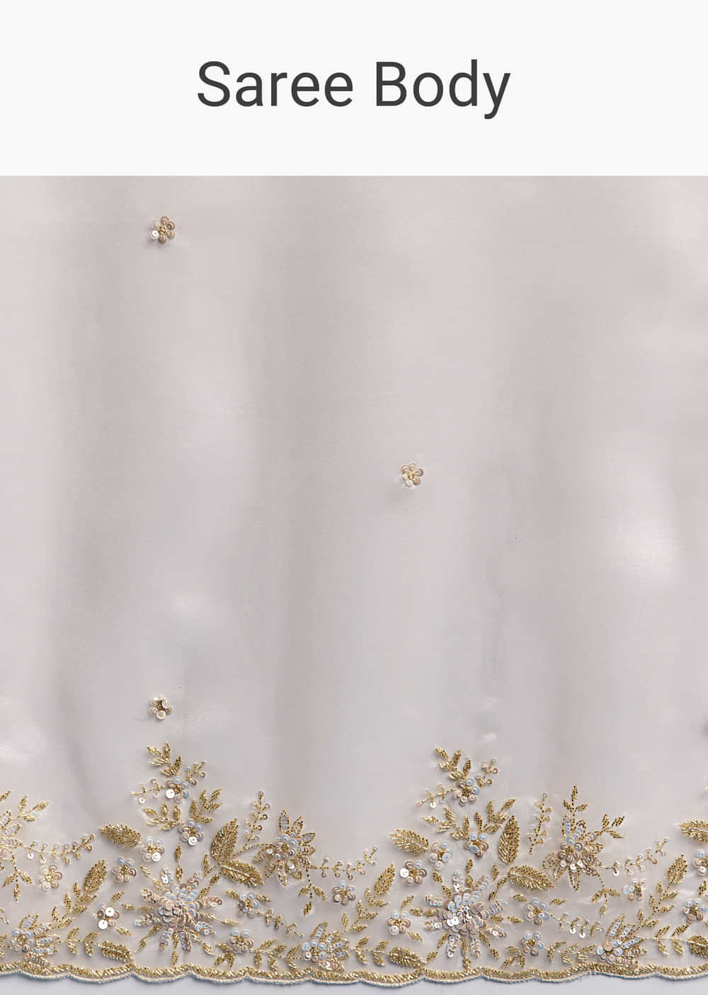 Beige Tissue Saree With Golden Floral Embroidery