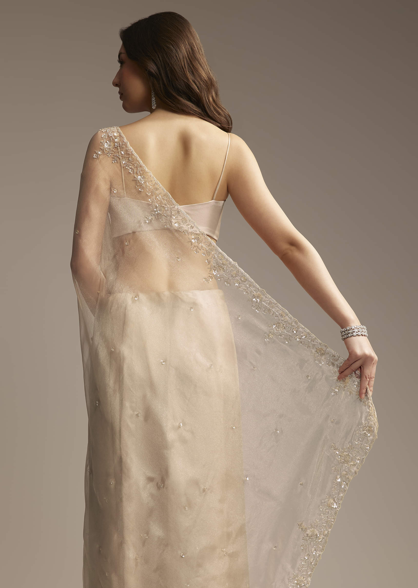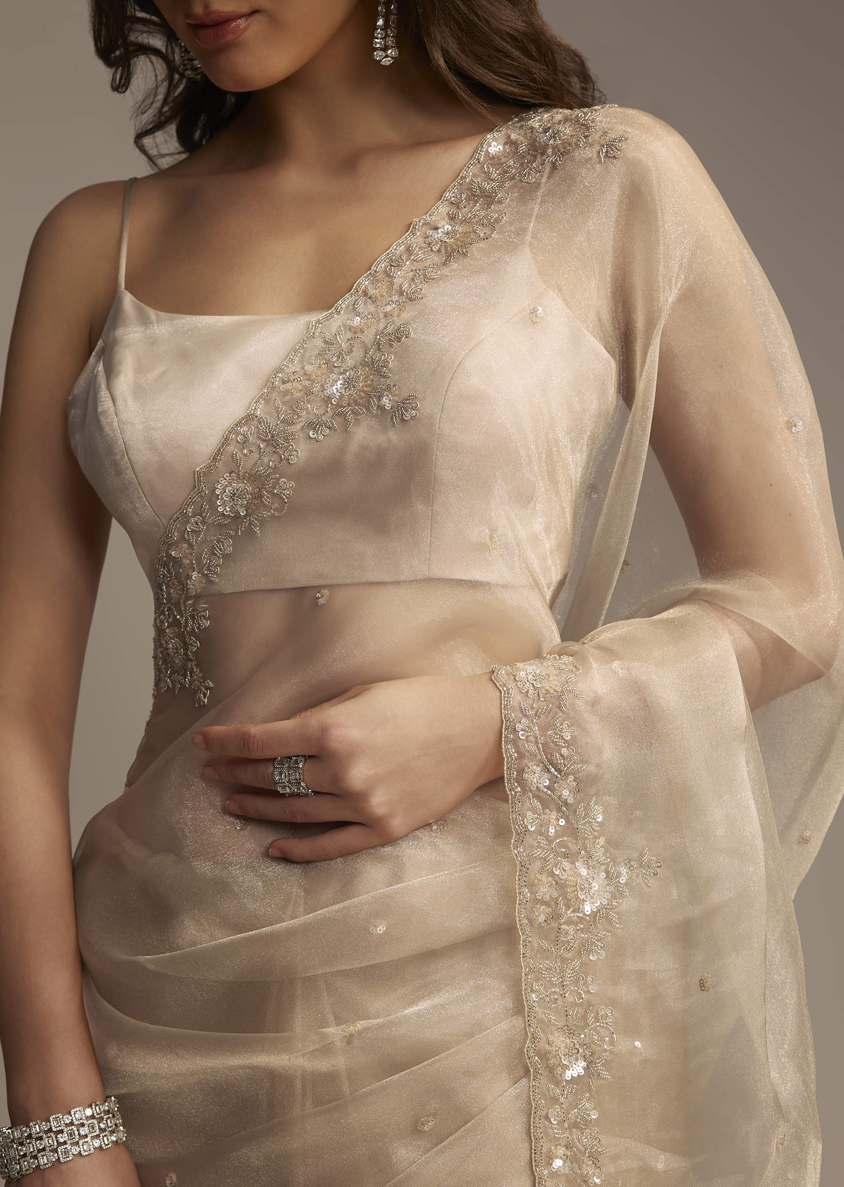 Beige Tissue Saree with Sequin Cutdana Embroidery
