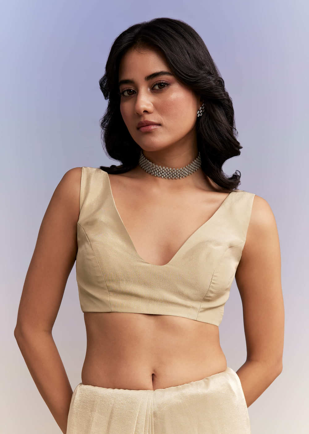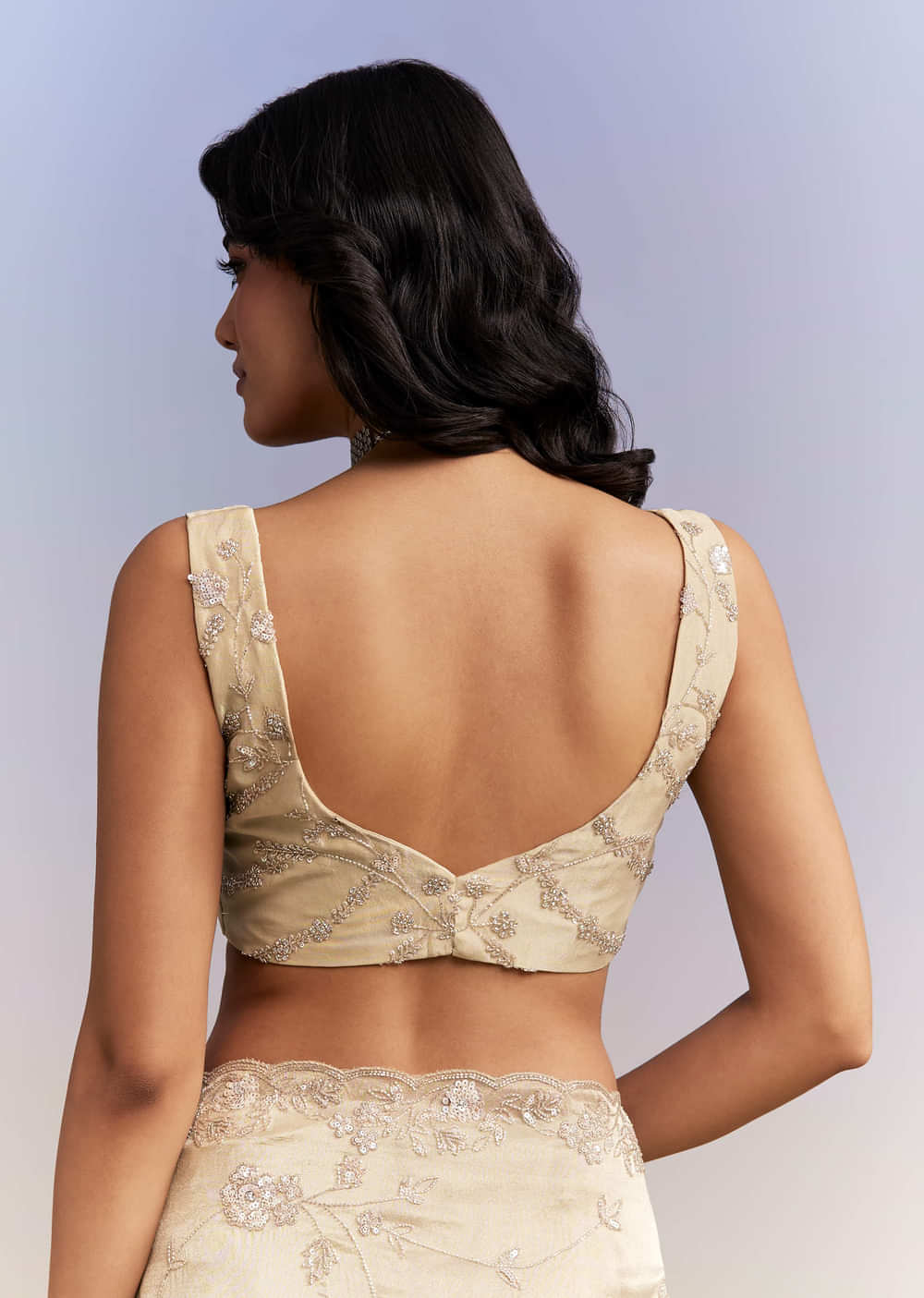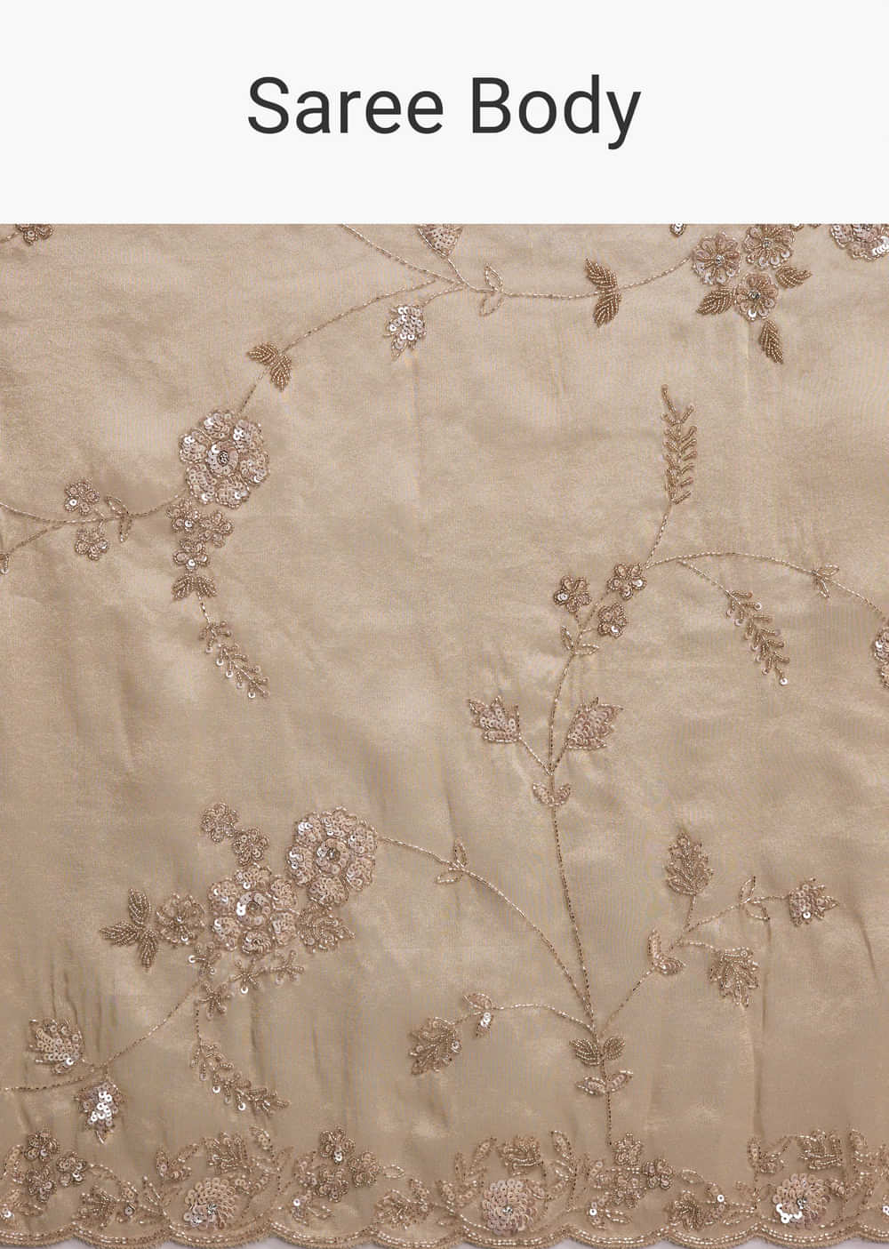 For light sparkle that feels refined, this beige tissue silk saree sets a glossy base that looks premium in photos. The scallop border is detailed with cutdana and a soft jaal while the saree carries all-over work, and the blouse fabric is embroidered with cutdana, sequins and beads. You feel composed and celebration-ready as a bridesmaid or the bride’s mother for mehendi, engagement and reception functions. Awarded as the Most Trusted Brand, we're delivering styles you love, just as promised.