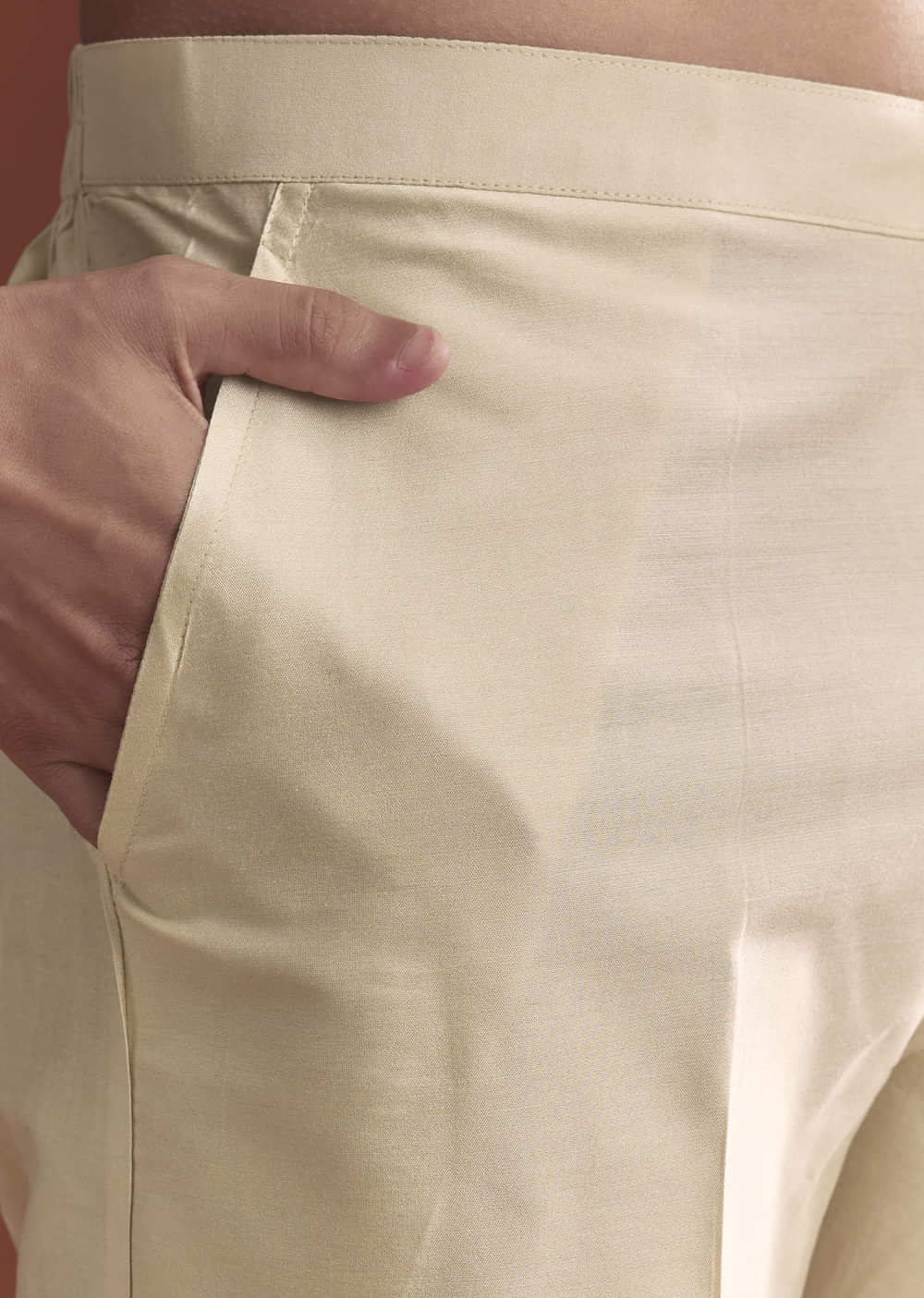 Craft speaks softly when this beige tussar men’s kurta set features Kashmiri work placed for fine, raised texture. The natural tussar handfeel keeps things breathable through busy hours. You look refined and comfortably dressed for festive plans. Awarded as the Most Trusted Brand, we're delivering styles you love, just as promised.