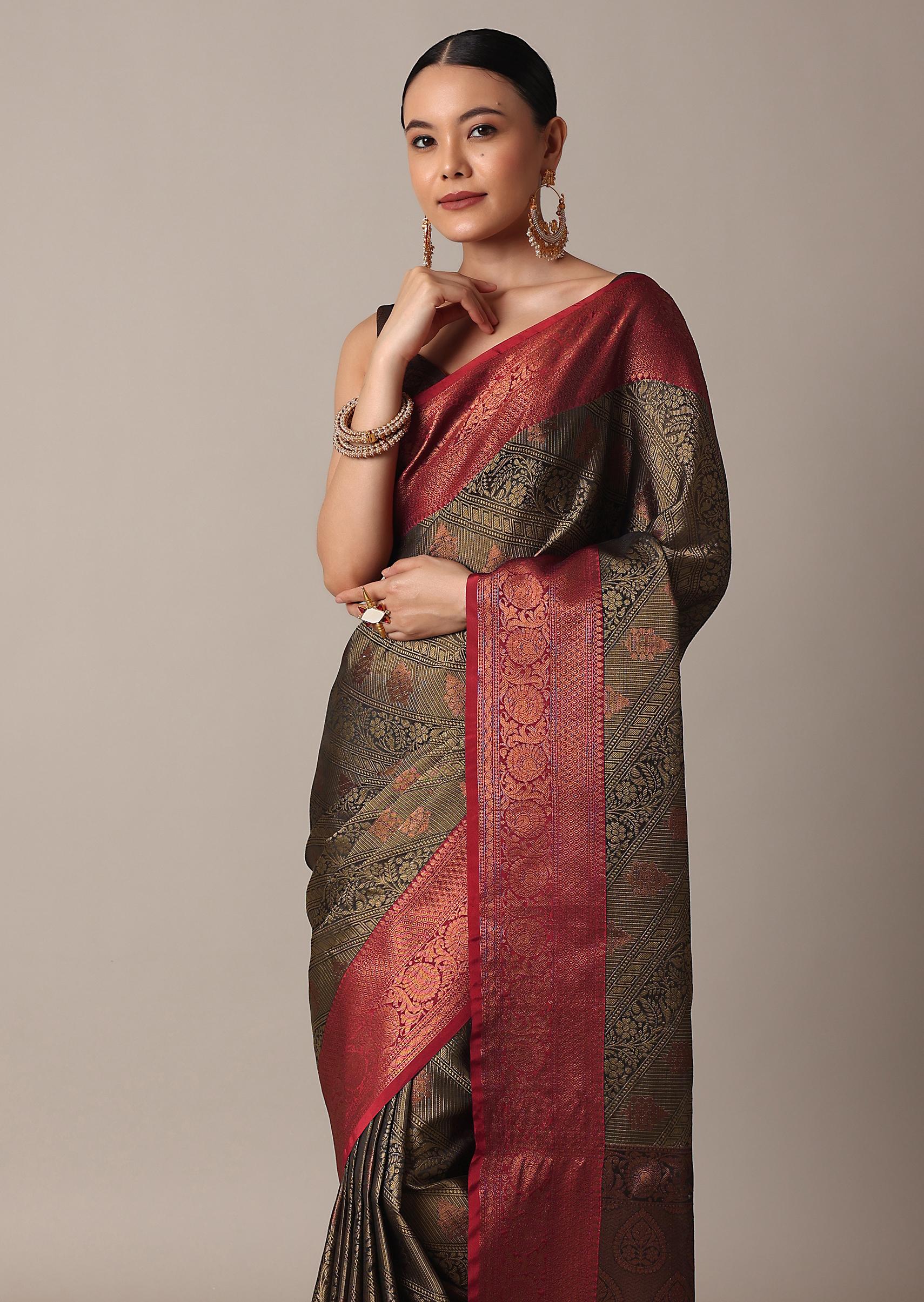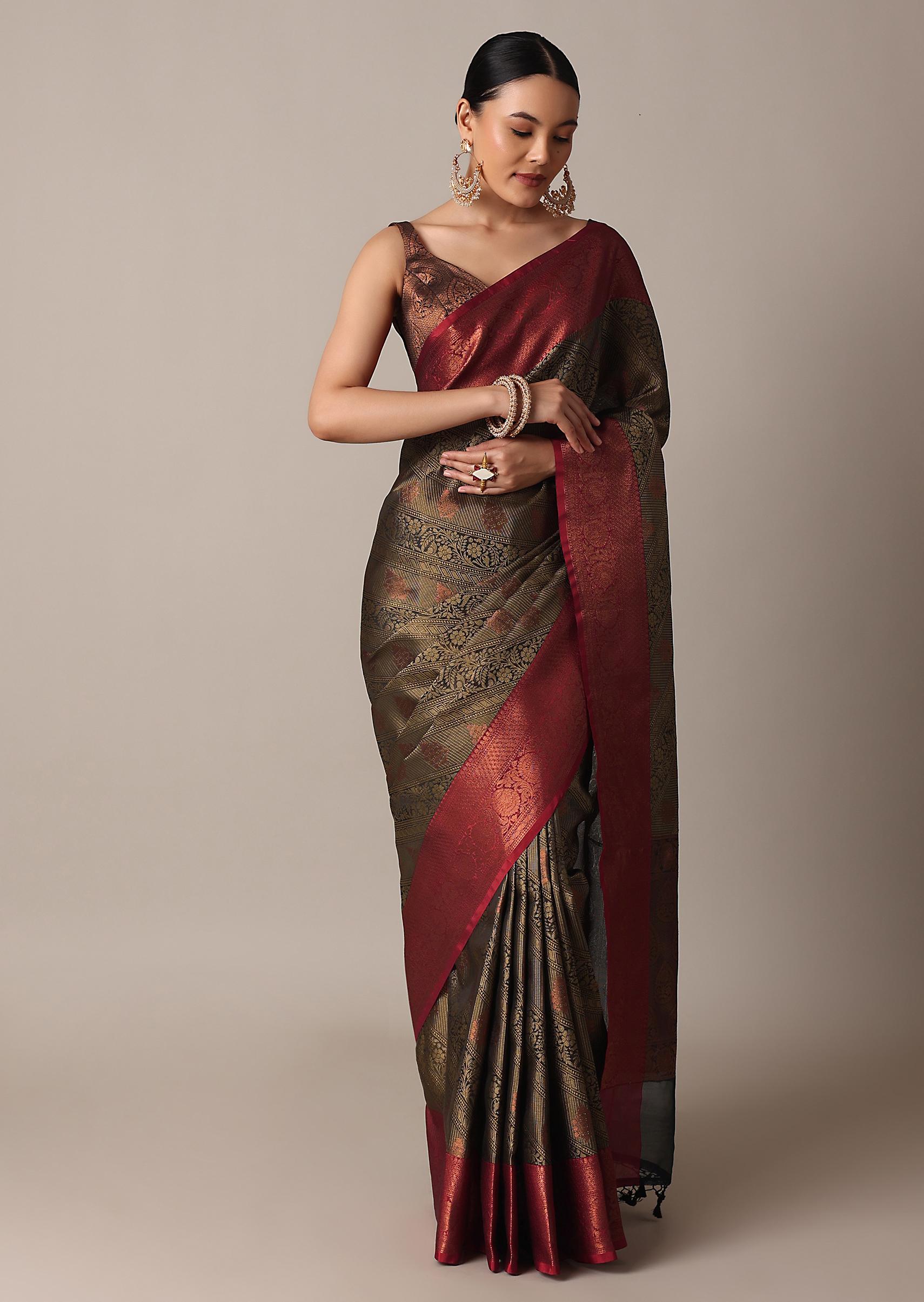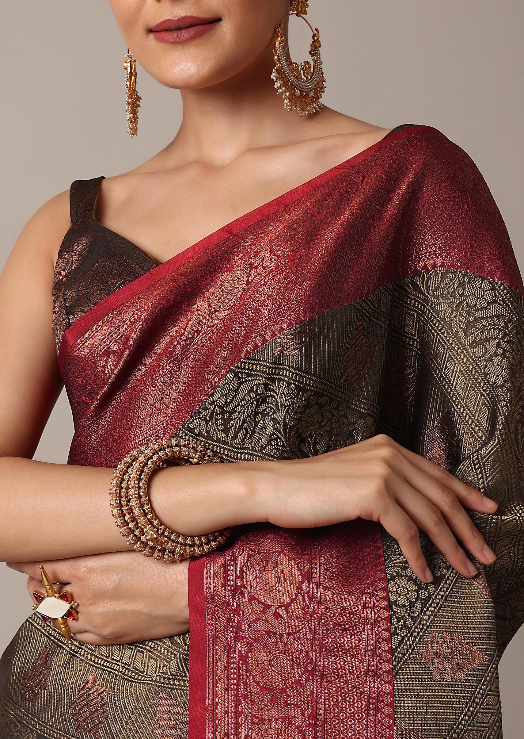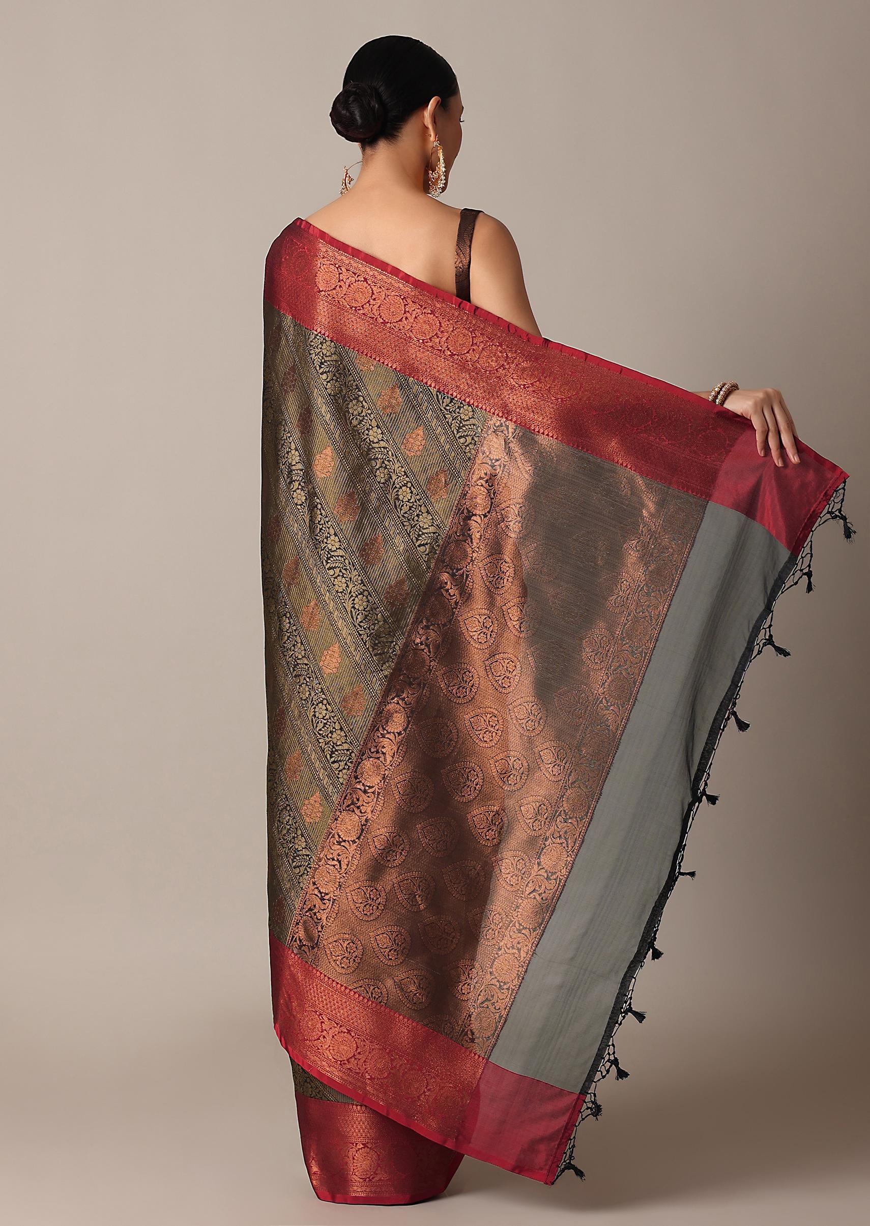 Black And Gold Banarasi Tunchui Silk Saree With Unstitched Blouse Piece