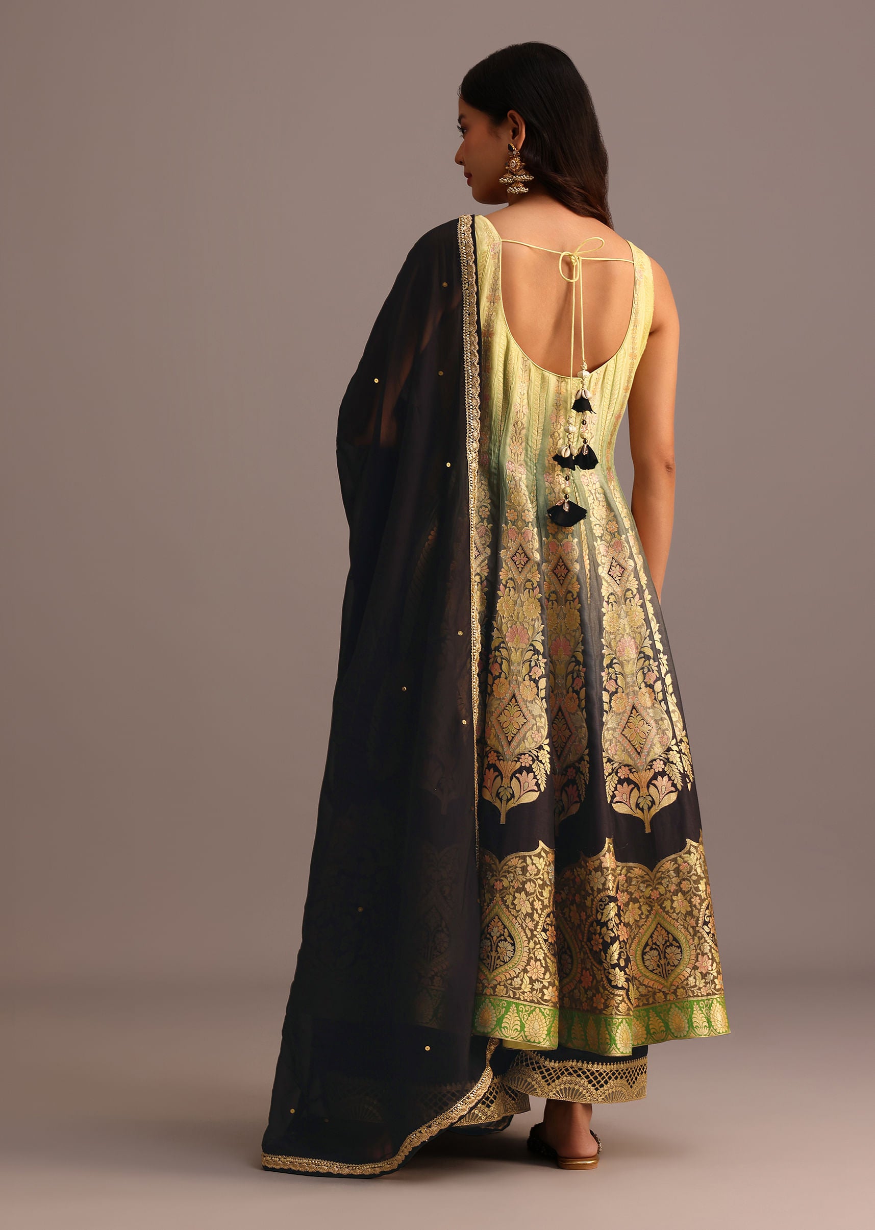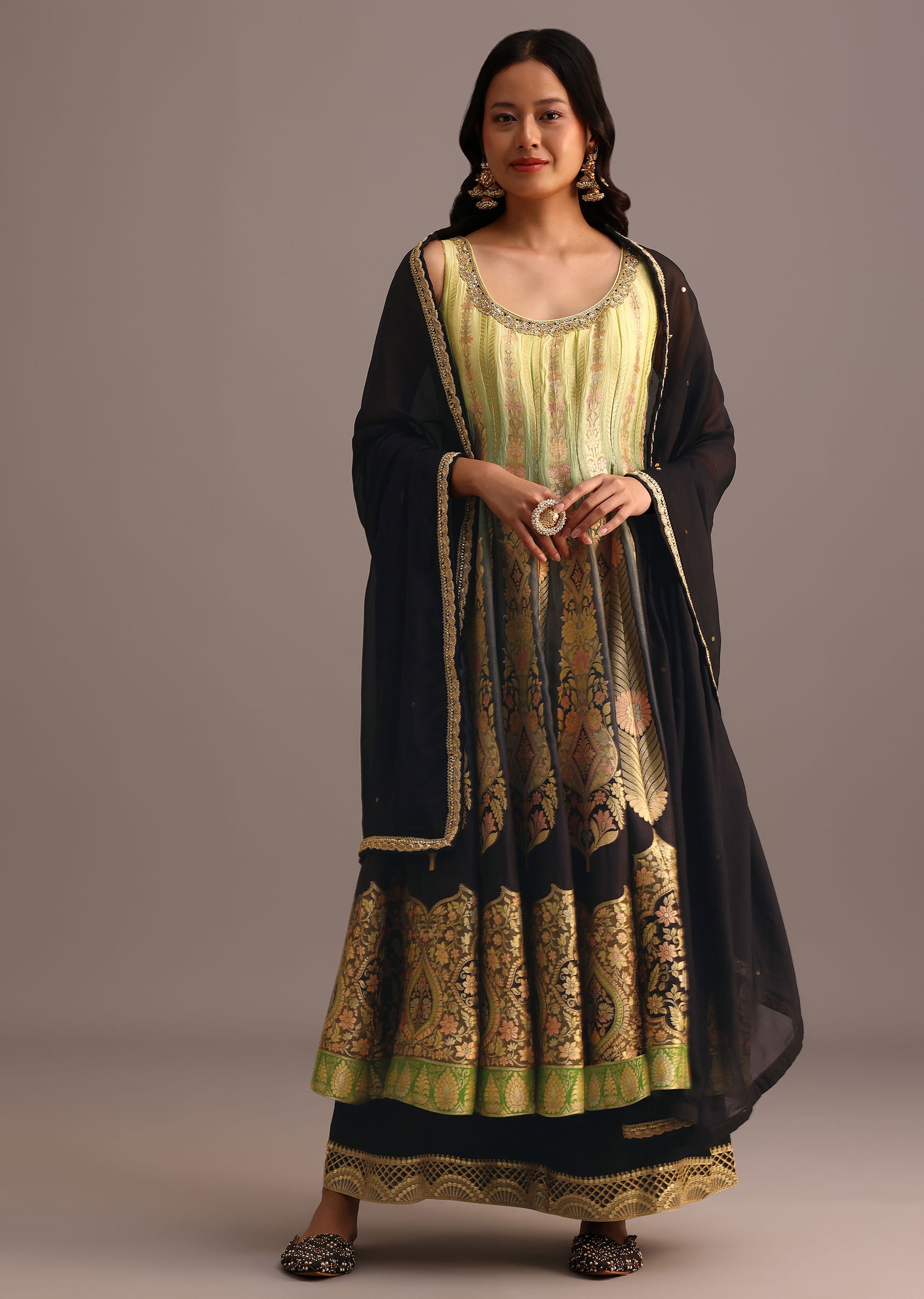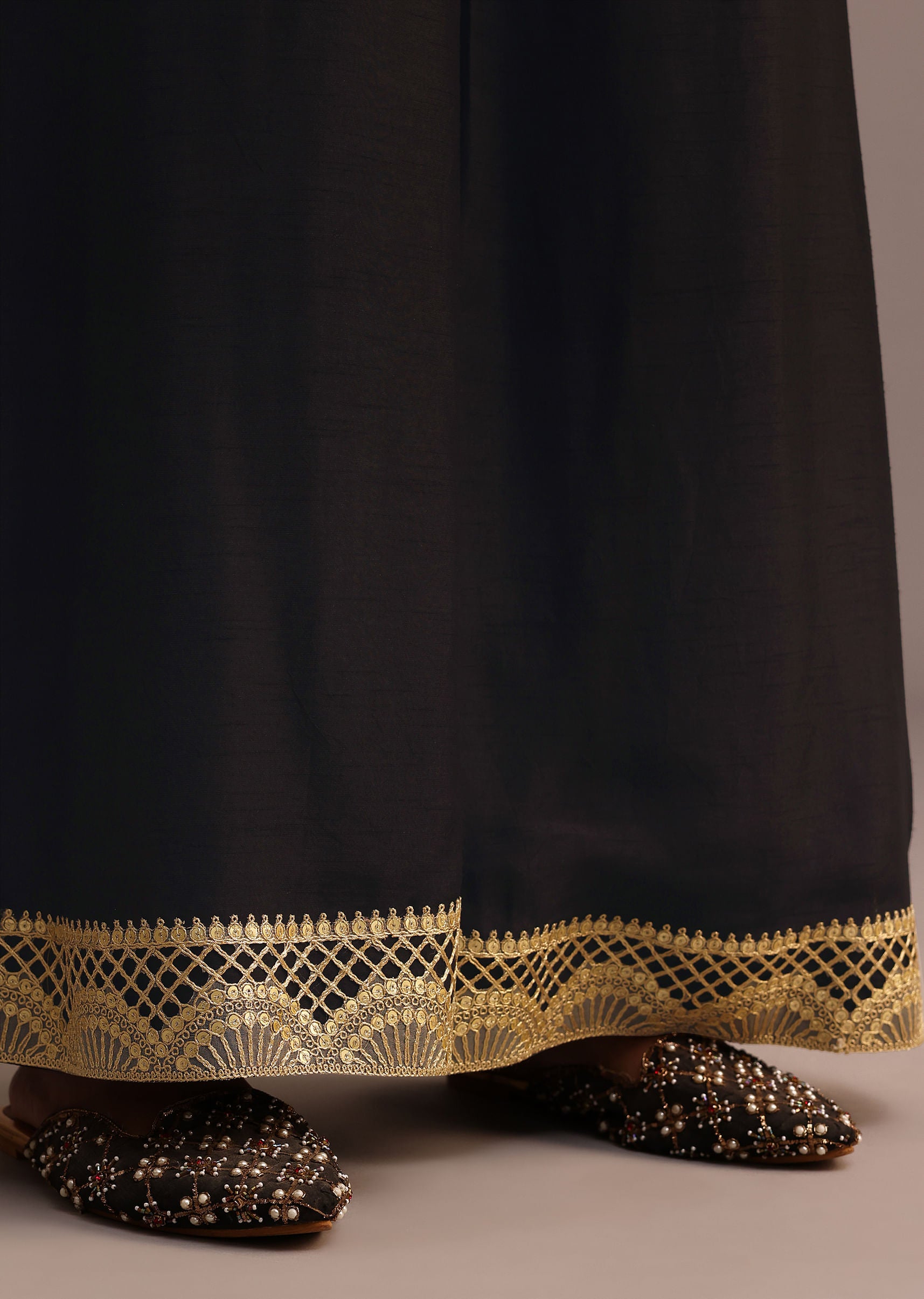 The classic black and light yellow embroidered kurti palazzo set is a gorgeous look. The intricate Banarasi weave, delicate cut dana work, and shimmering sequins create a truly captivating piece.... More Product Details
