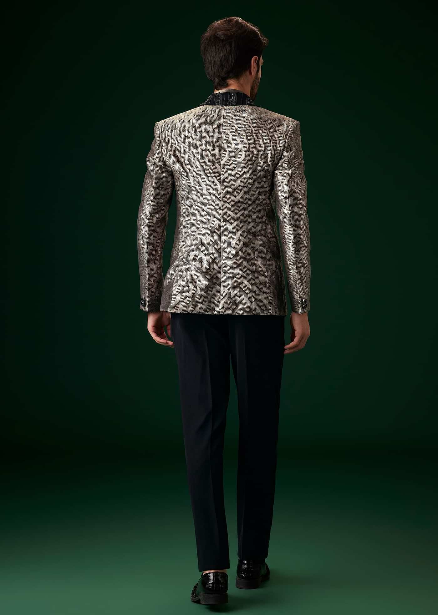 Black Banarasi Silk Tuxedo With Cut Dana And Crystal Embroidery