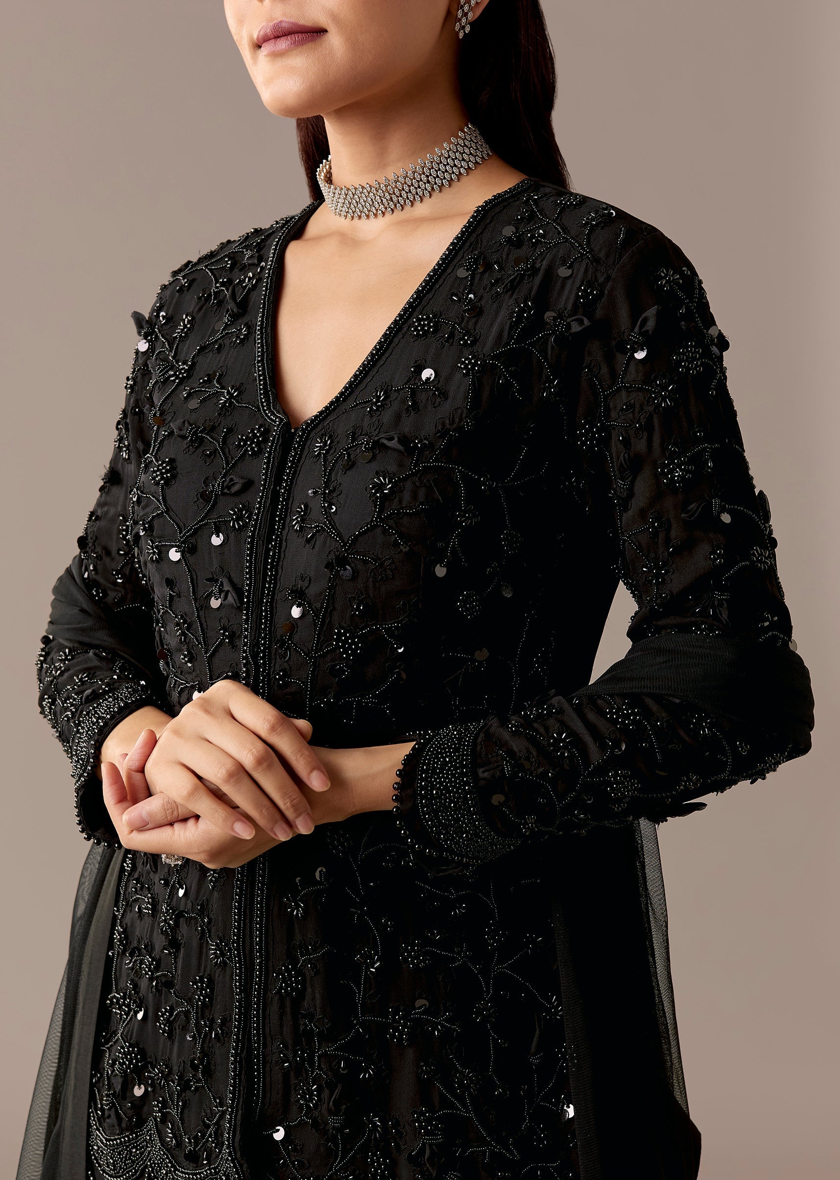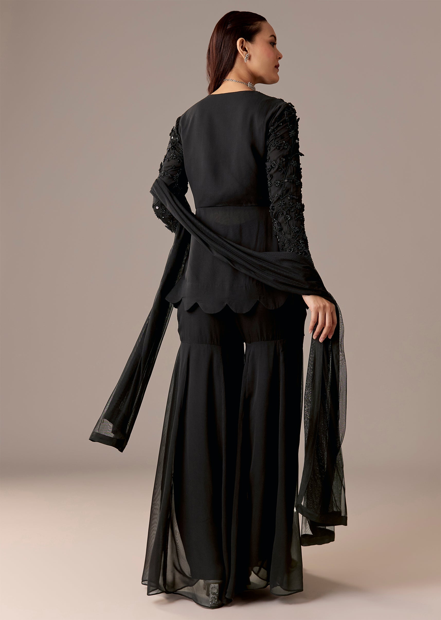 Black Beaded Peplum Sharara Set