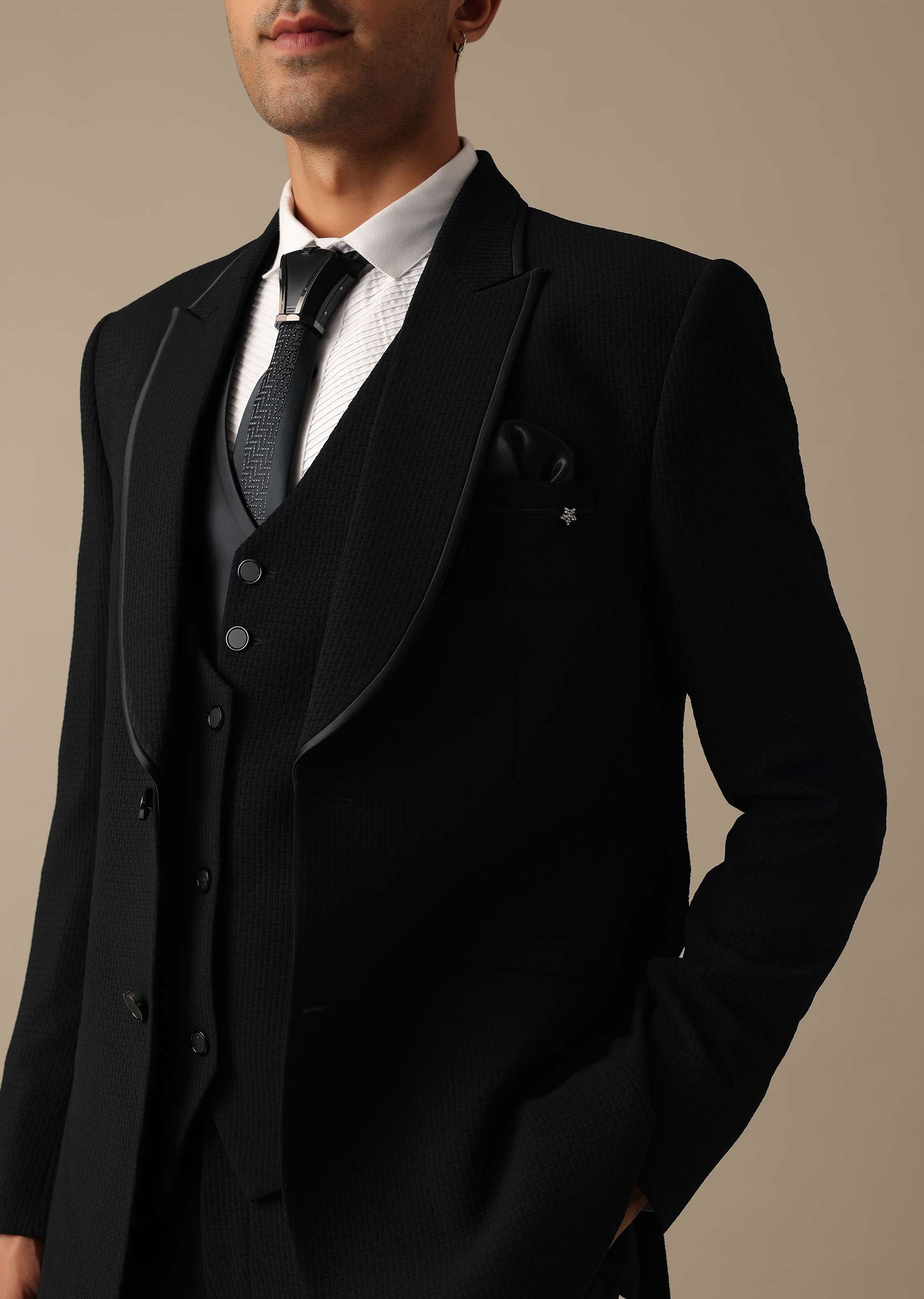 Black Blazer And Pant Tuxedo Set With Cutdana Work