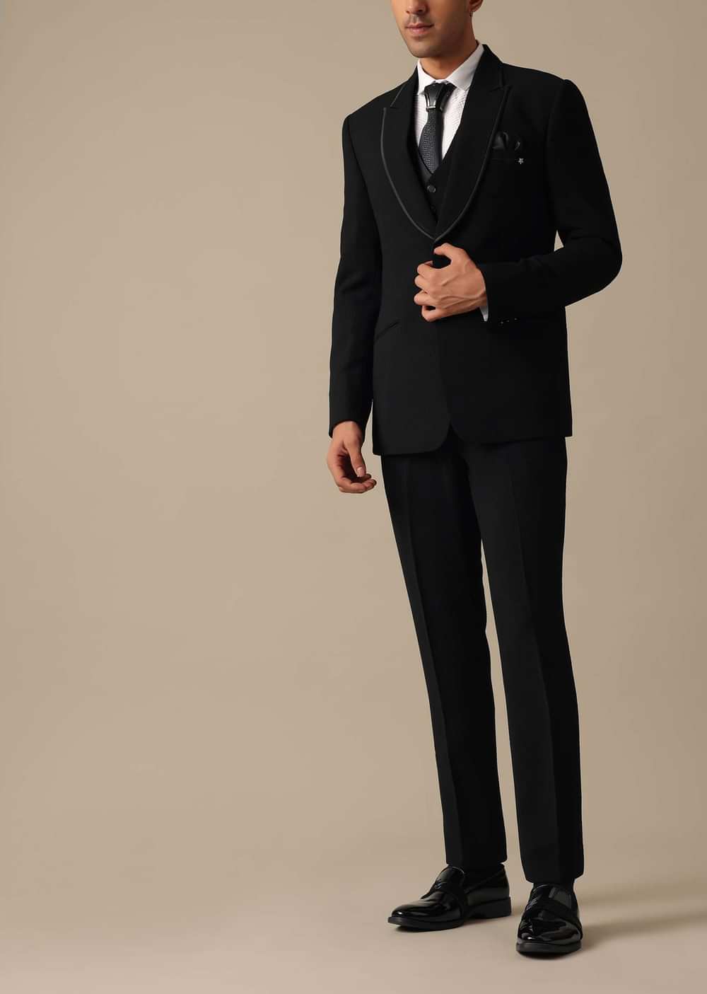 - Your go-to choice for over-the-top wedding celebrations, this black blazer set embraces you in cocoon of style and comfort.