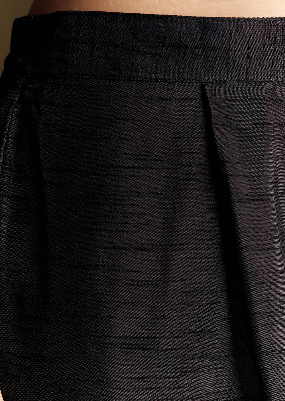 A rich black angarkha-style Anarkali in chanderi fabric, detailed with delicate moti and sequin embroidery. Paired with a matching dupatta, it???s perfect for receptions or sangeet evenings. Awarded as the... More Product Details