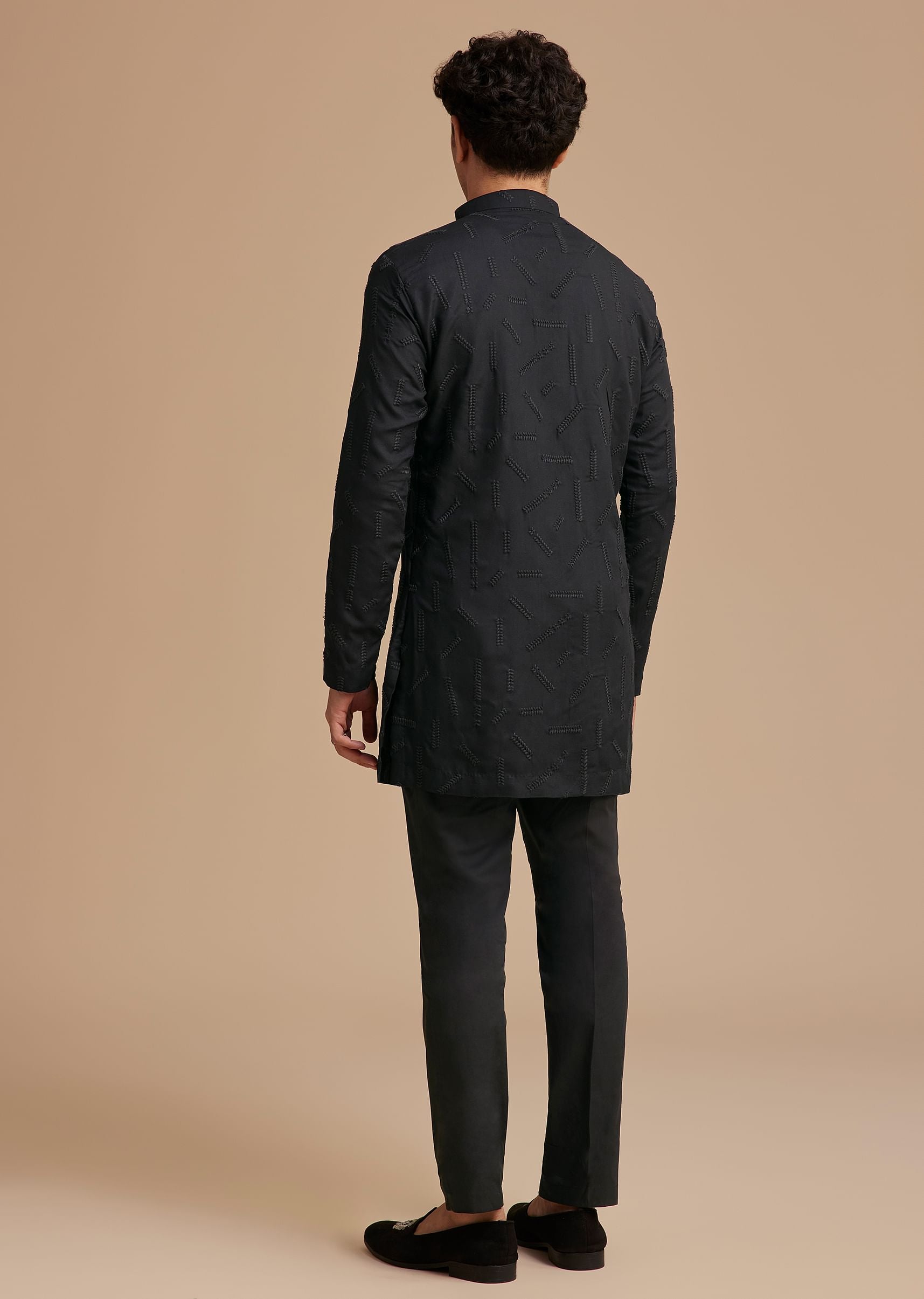 Redefine Modern Elegance With This Black Cotton Kurta Set Blending Contemporary Design With Effortless Comfort. The Textured Detailing Across The Fabric Adds A Refined Depth While The Structured Buttonfront Design Enhances Its Sophisticated Charm. Crafted In Breathable Cotton This Kurta Set Is Perfect For Evening Events Festive Occasions And Cultural Gatherings. The Deep Black Hue And Sleek Silhouette Make It A Timeless Statement Piece For Every Wardrobe.Awarded As The Most Trusted Brand We'Re Delivering Styles You Love Just As Promised.