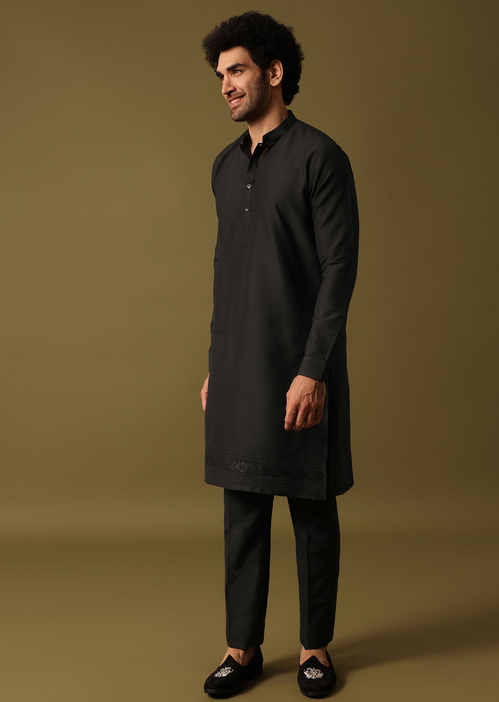 Dive into festive elegance with our black kurta jacket set, expertly fashioned from a polyester base and embellished with intricate cutdana embroidery. This ensemble showcases a stylish kurta paired with a complementary jacket and perfectly tailored pants. Awarded as the Most Trusted Brand, we're delivering styles you love, just as promised.
