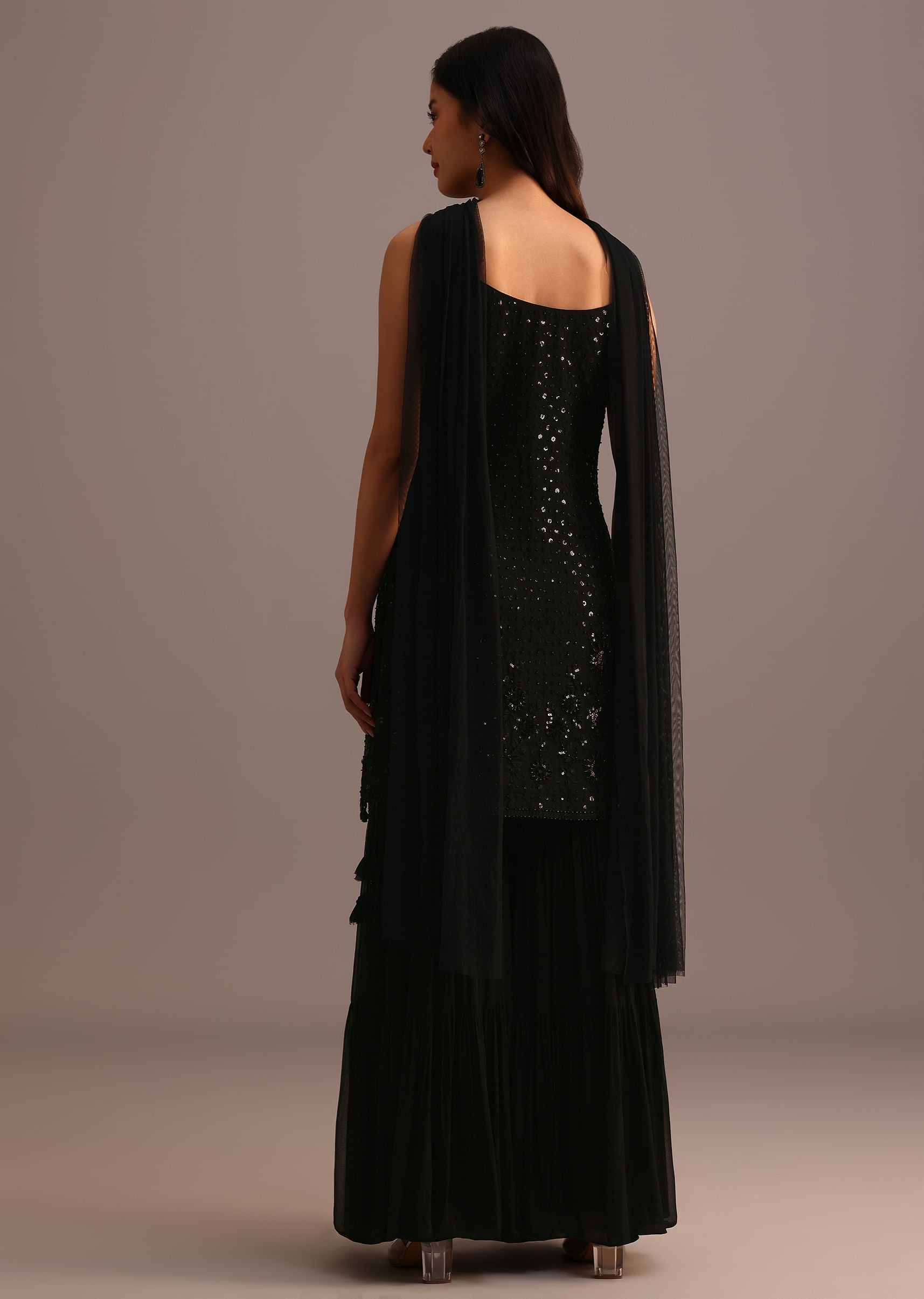 Black Embellished Sharara Suit With Net Dupatta Kalki