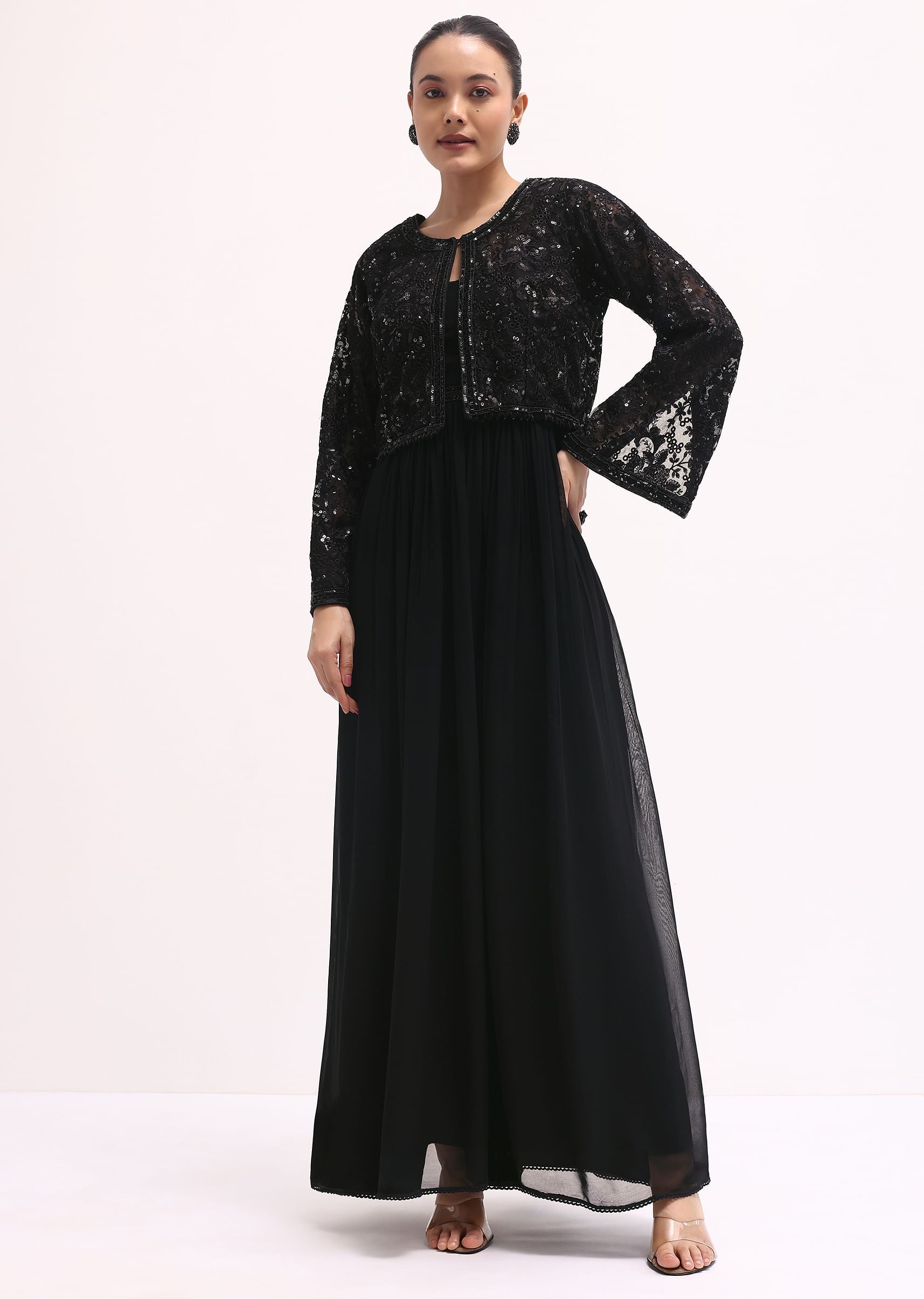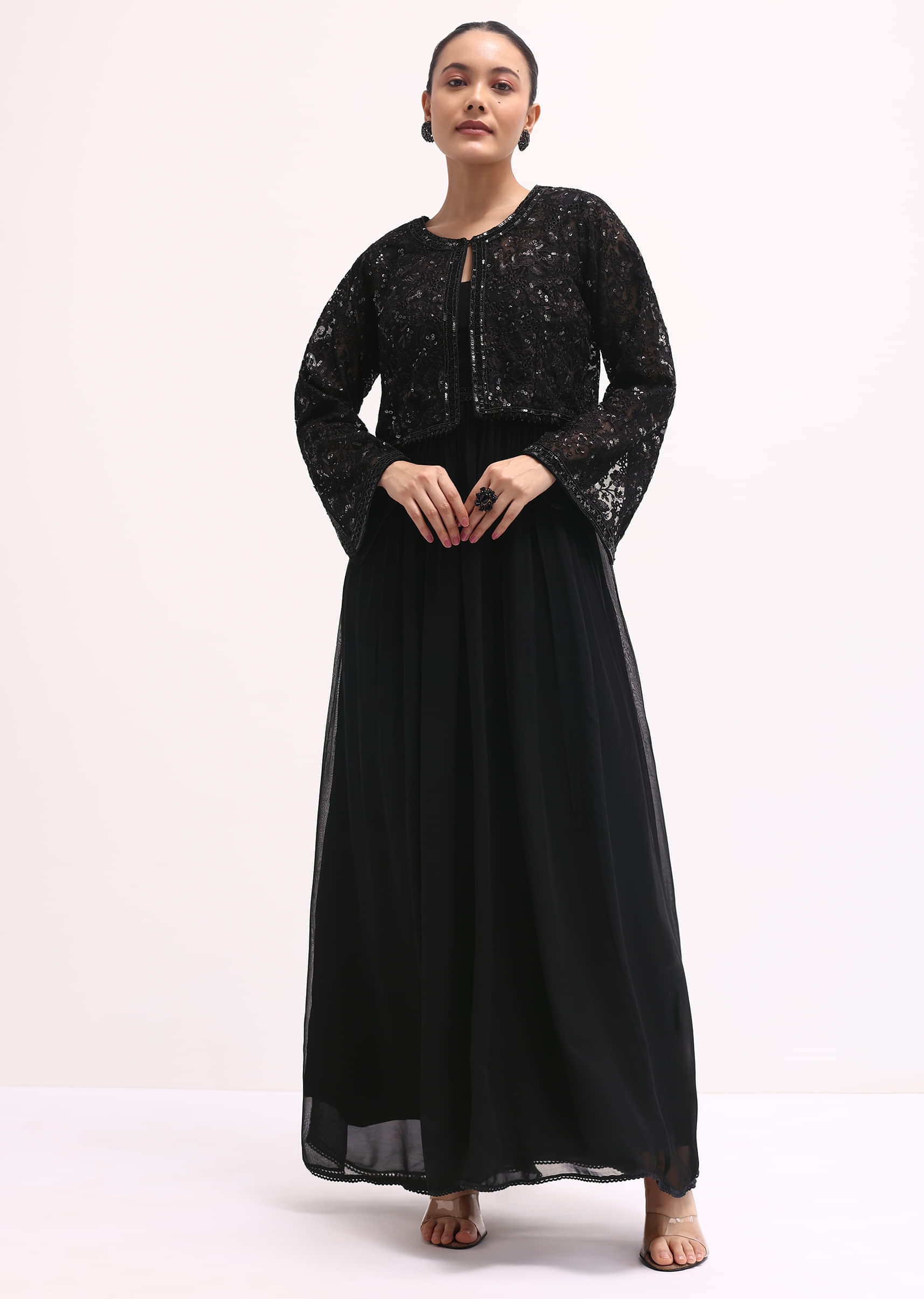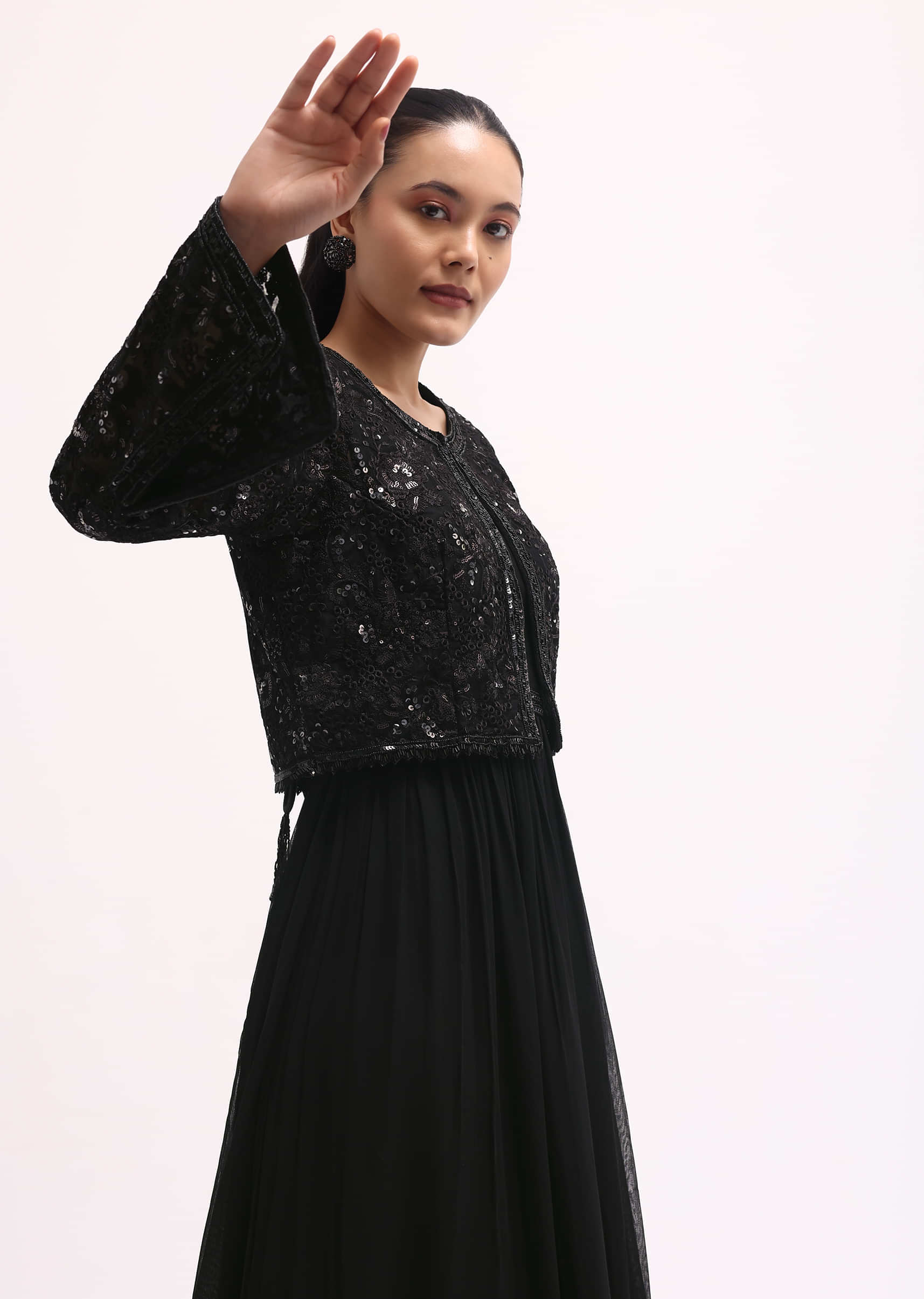 - Embrace the captivating allure of our black anarkali set, meticulously designed for festive occasions.
