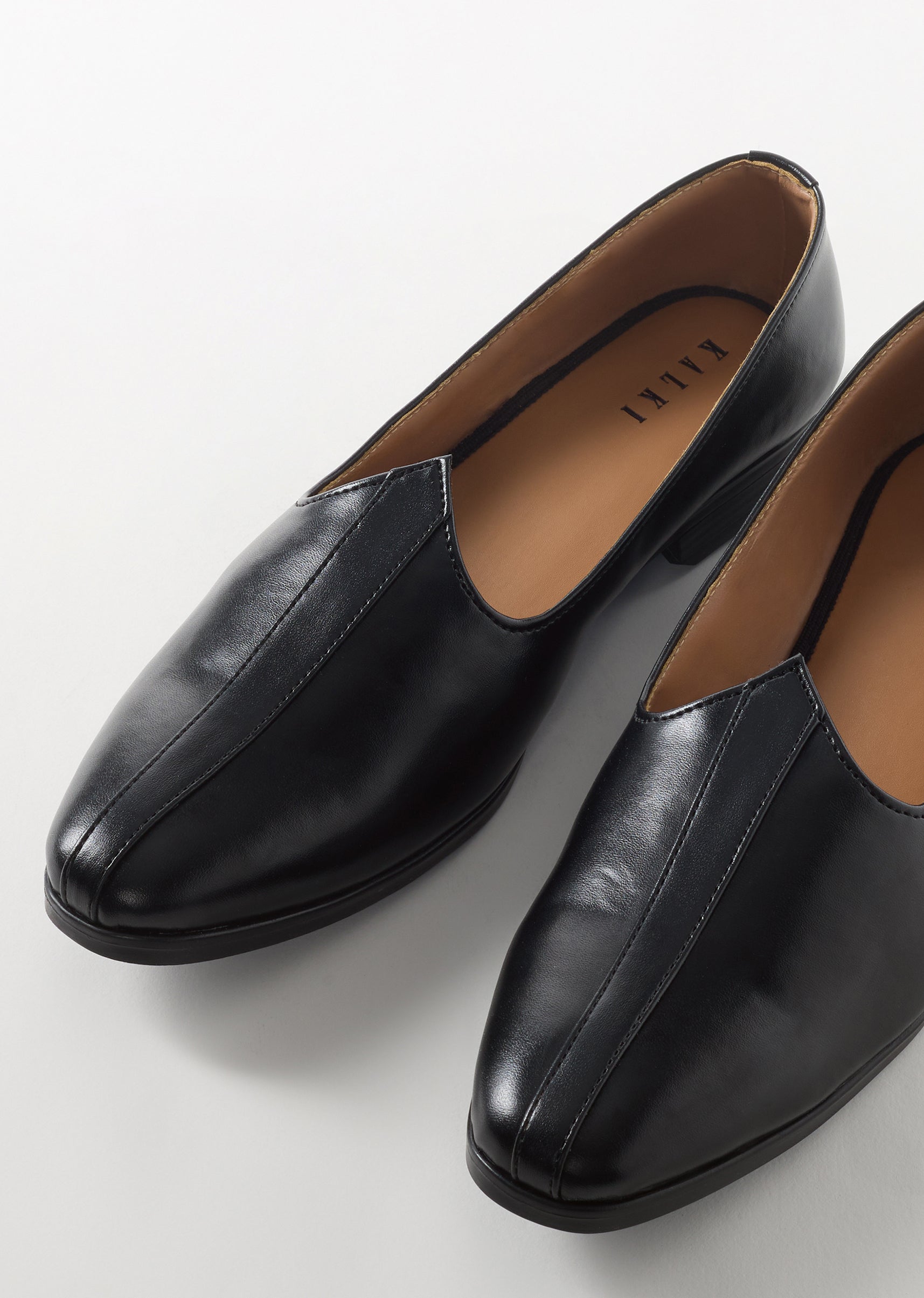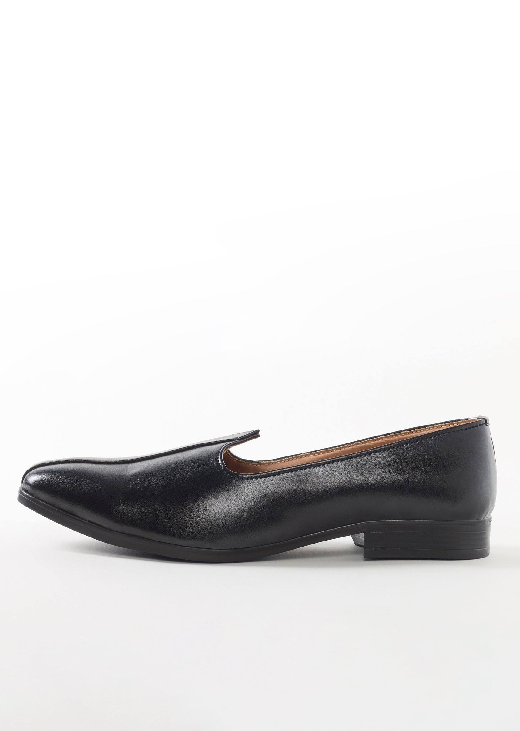 These black ethnic juttis feature a sleek slip-on design with a clean and minimal aesthetic for a timeless and versatile look. The faux leather base ensures comfort and durability while... More Product Details